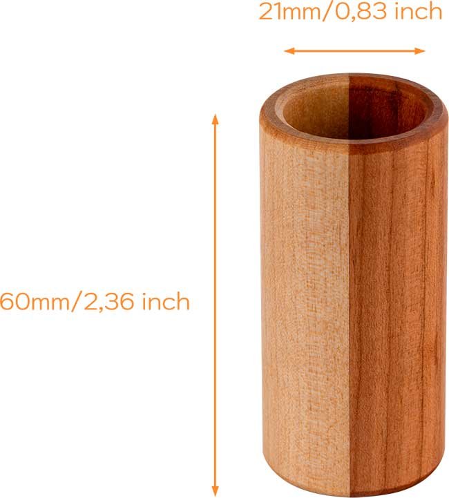 The wooden slide combines the sound of a traditional bottle slide with the features of a wooden product. The slide isn't as heavy as a brass slide and has, by far, the warmest sound I've ever heard. Available in 4 sizes (small, medium, large and extra large), you're sure to find the perfect fit.