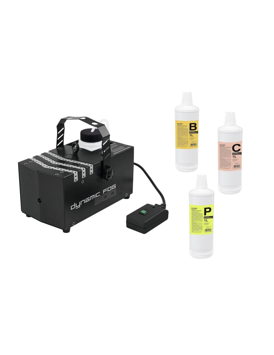EUROLITE FOG 600 SET + FLUID. Set consisting of a Eurolite Fog 600 smoking machine and a 1l bottle of EUROLITE Smoke Fluid -A2D- Action Smoke Fluid. The technical characteristics of the machine include stand-alone use using the supplied wired remote control, temperature control by command, 600W of boiler power, status LED, removable 0.5l tank with level indication. It works with water-based liquids.