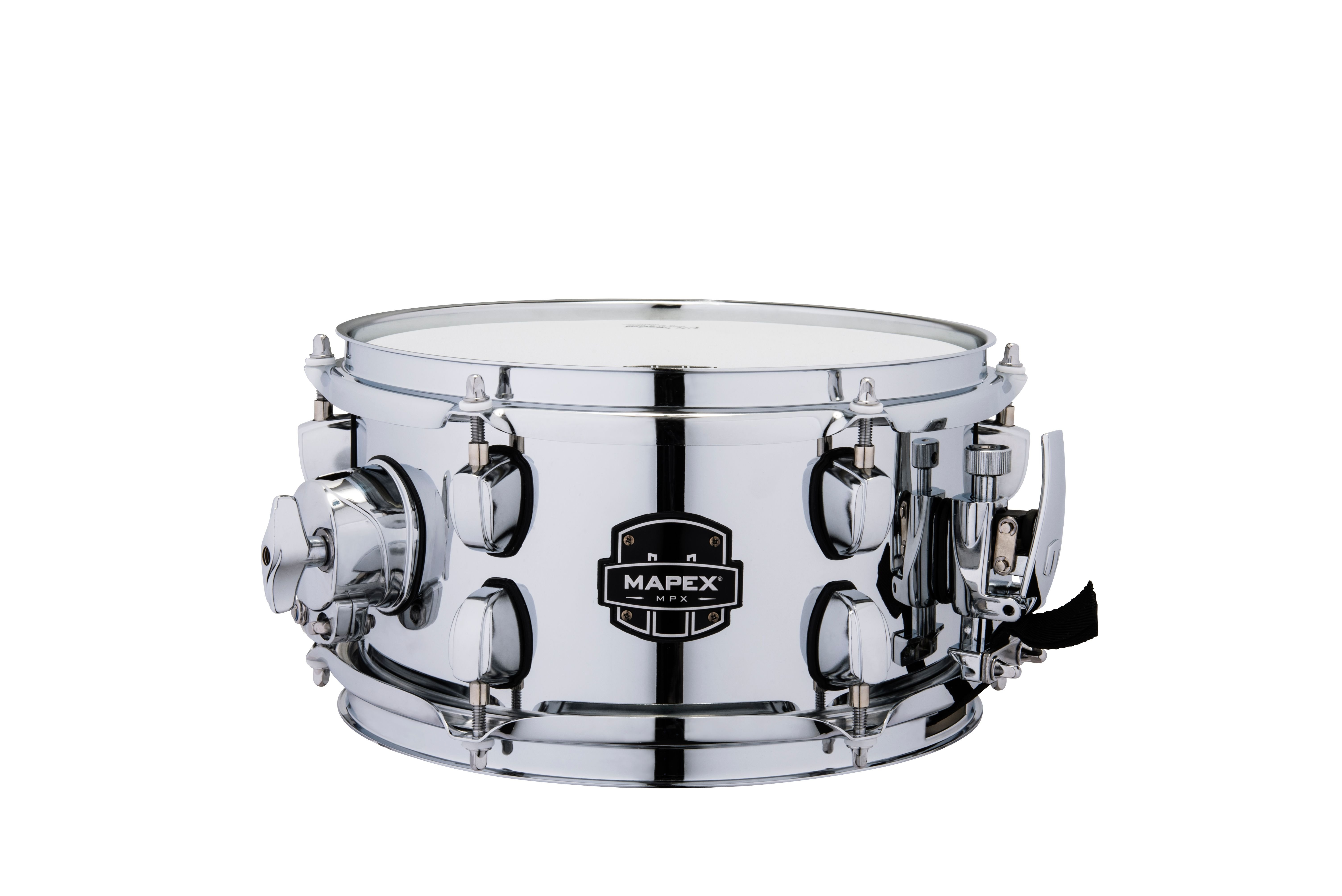 Mapex completely renews the successful MPX series to offer you snare drums with an unbeatable quality/price ratio! The new 1mm steel drums, the new low-mass W-lugs blocks and the new Mapex piston tensioner make these tools unbeatable in their price range. MPX Snare 10x5.5 Steel Drums 1mm Chrome Finish Chrome Hardware Triple Flange Circles Tightener Piston Drive Pelli Remo UX
