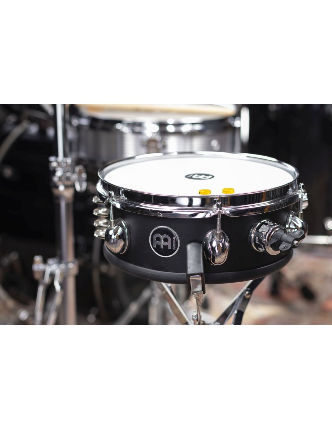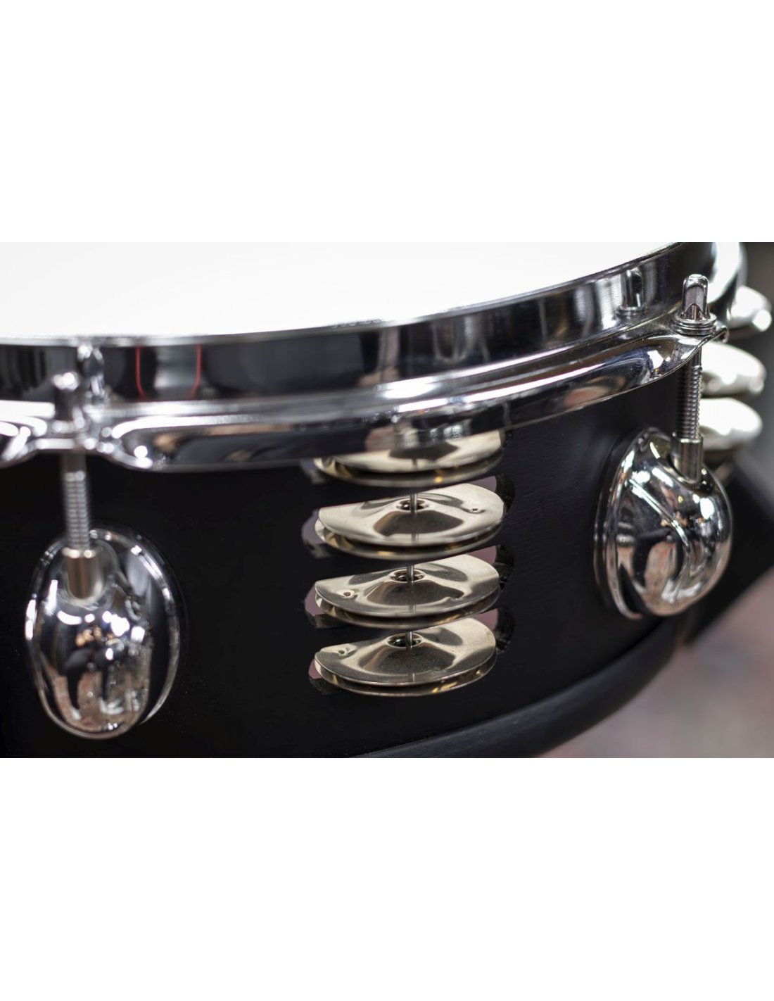 The Meinl Compact 10Ó Jingle Snare Drum resonates with a super bright and crisp tone. Stainless steel jingles are integrated into the barrel to give the drum a layered tambourine sound. The tailpiece mounted against the skin and adjustable with a knob on the frame. Equipped with a stand that fits percussion rods or small tom arms for easy positioning. Features: 10º compact diameter Steel cymbals for tambourine effect Adjustable tailpiece Block for mounting on a bra or flat rod