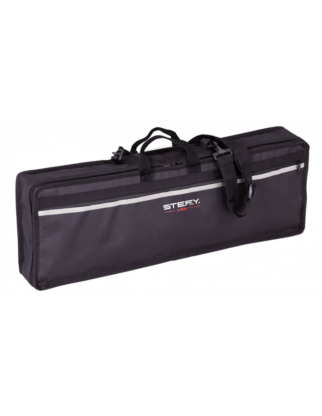 STEFY LINE EK35 BAG is a polyester keyboard bag with 10mm internal foam padding, accessory pocket, 2 carrying handles, shoulder strap and rubber reinforcements on the bottom.
