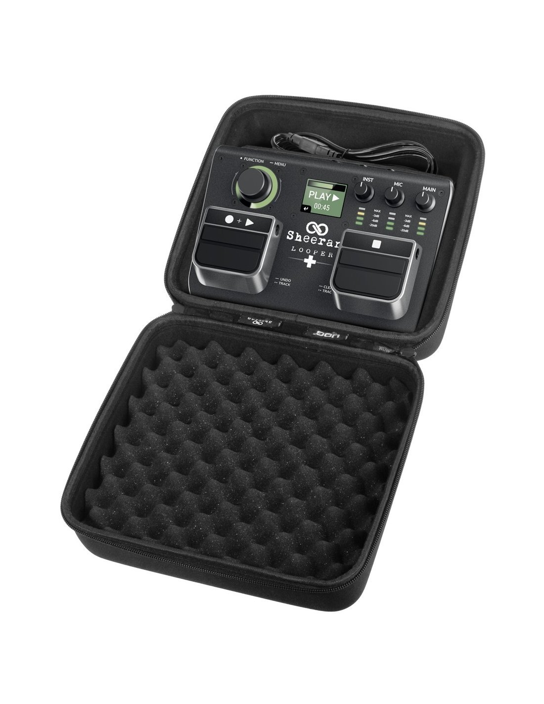 Sheeran Loopers and UDG have developed a custom-made lightweight EVA hard case for Looper +. The hard case is made of durable and lightweight compression-molded EVA material with a water-repellent laminated nylon exterior. This quality case offers first-rate protection against drops, scratches and liquids. FEATURES • Suitable for Sheeran Looper+ and extra cables • Main material: 600D polyester with 5 mm durashock EVA molded body • Durable water repellent fabric exterior • Protective honeycomb foam to prevent vibration and shock damage • Soft black fur interior • Comfortable shoulder strap • Durable handle • Easy to grab zipper zippers