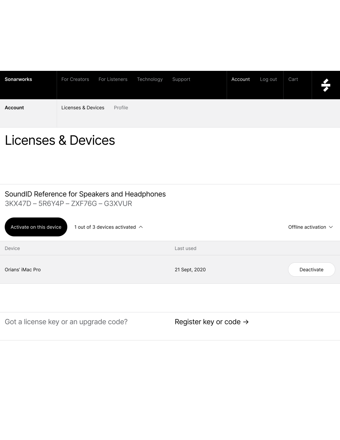 SONARWORKS SoundID Reference per Speaker e Cuffie - Codice