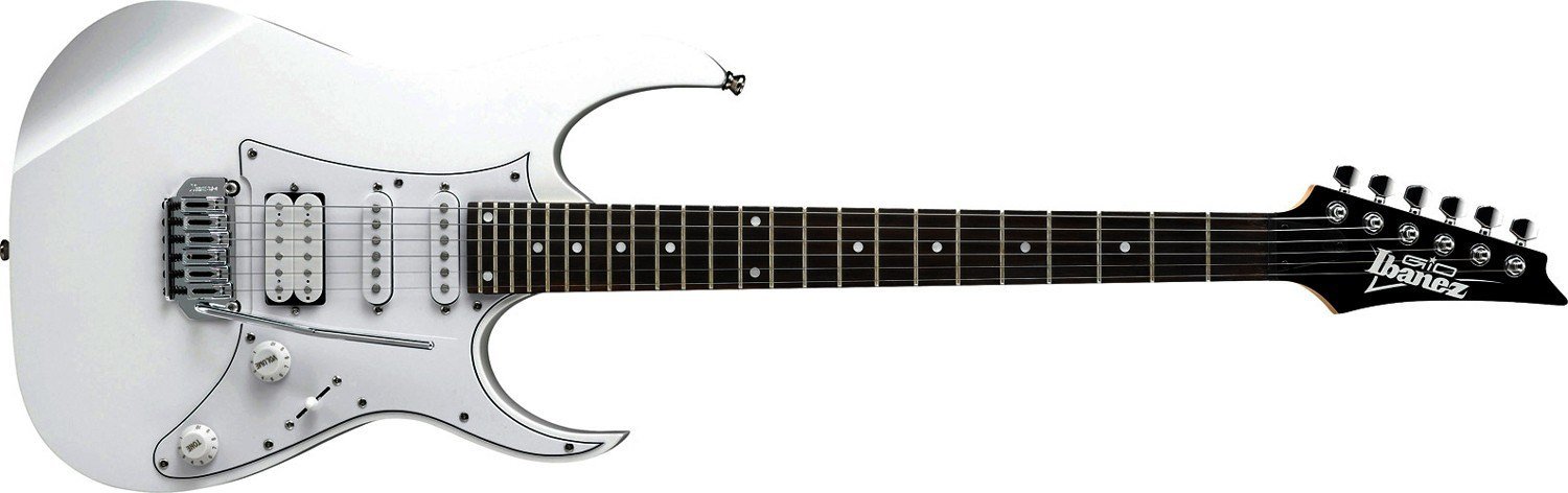 Ibanez GRG140-WH Electric Guitar color WHITE. The Ibanez GRG140-WH is a 6-string electric guitar. Technical features include linden body, GRG maple neck, rosewood fingerboard, 400mm radius, 24 jumbo frets, FAT-10 bridge with lever, STDS single coil pickup (neck/middle) and STDH2 humbucker (bridge