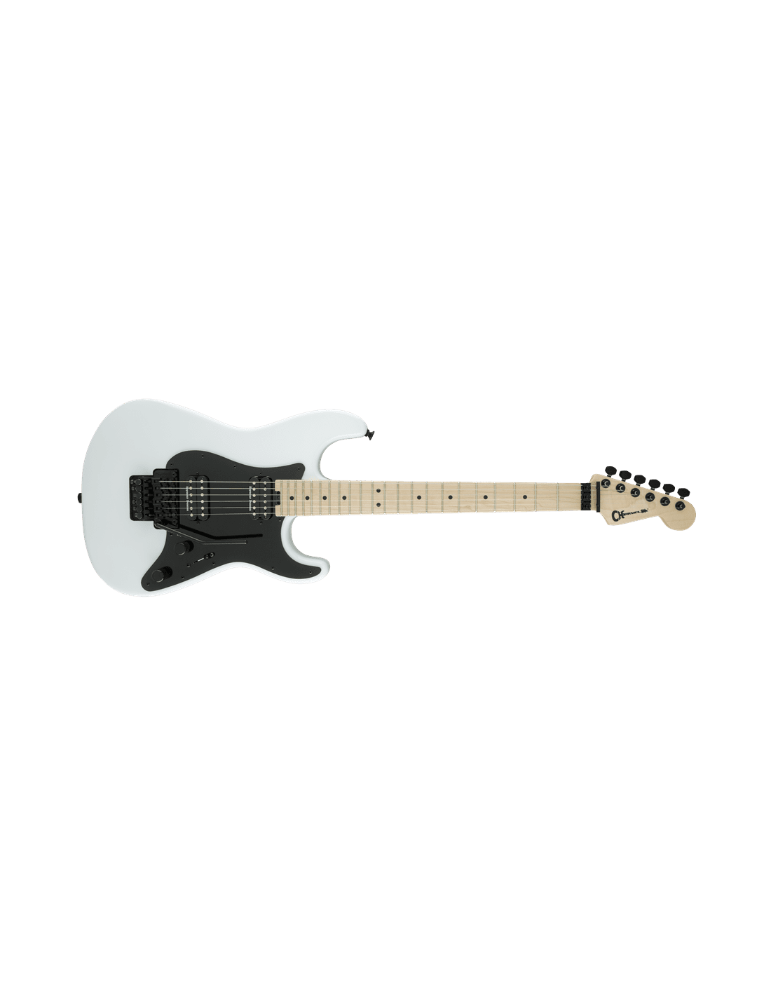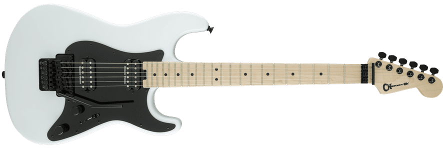 Charvel Pro Mod SC1 2H FR Electric Guitar, SNOW WHITE color. The Charvel Pro Mod SC1 2H FR is a 6-string electric guitar. Technical features include alder body, 2pc maple neck, maple fingerboard, compound radius 12” -16”, 22 jumbo frets, Floyd Rose 1000 Series bridge, Seymour Duncan SH-6 Distortion (neck) and Seymour Duncan TB-6 Distortion (bridge) pickups, Volume controls (Push/Pull Coil Split), No-Load Tone