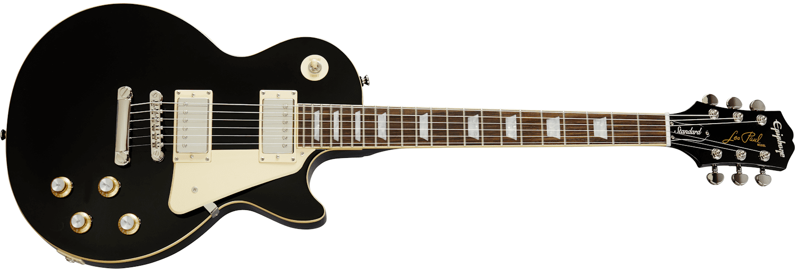 Epiphone Les Paul Standard 60s Electric Guitar color EBONY. The Epiphone Les Paul Standard 60s is a 6-string electric guitar. Technical features include mahogany body, “AA” flamed maple top, mahogany neck with Slim Taper 60s “C” profile, Indian Laurel fingerboard, radius 12”, 22 medium jumbo frets, Epiphone Probucker 2 pickup (neck) and Epiphone Probukcer 3 (bridge)