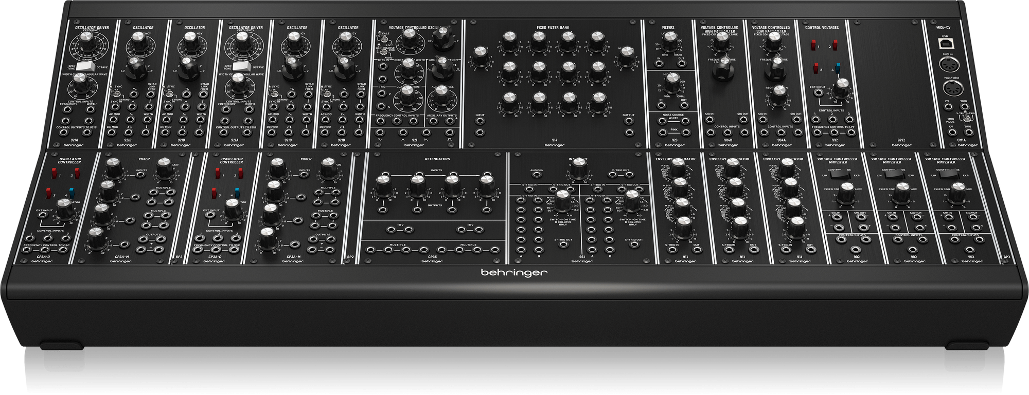 BEHRINGER SYSTEM 35 is a 25-module modular synthesizer with MIDI/CV converter for Eurorack.