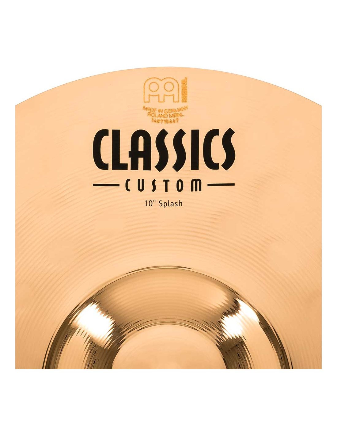 'Splash 10"” Classics Custom Series. The Classics Custom series cymbals are mechanically produced in Germany with a B10 alloy. The process involves various techniques, both pressure and computerized typing. In addition to this they receive a glossy lacquer that gives them a spectacular glossy finish.
