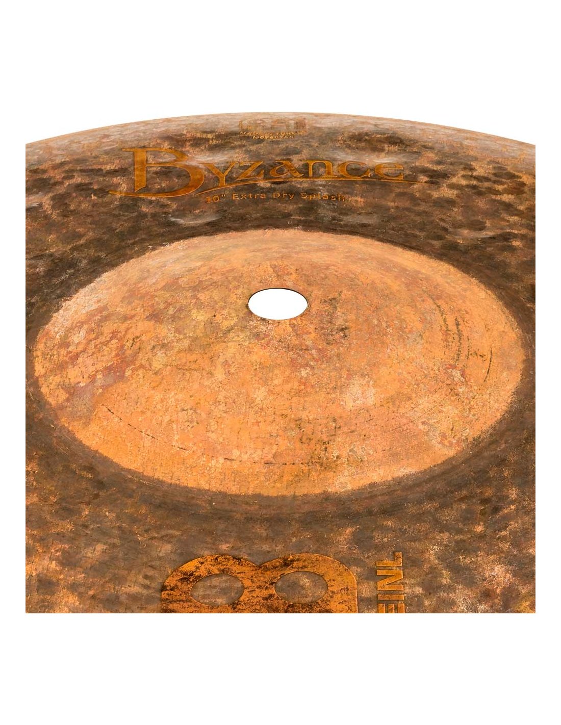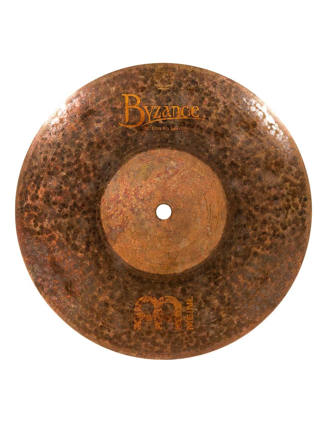 'Splash 10", Extra Dry Series. The plates of the Byzance Extra Dry series are handcrafted in our factory in Turkey by specialists and respecting tradition throughout the process. All plates are made with B20 bronze alloy discs. Several techniques are involved in the process, both hammering and turning. The unlathed upper finish with larger diameter hammering combined with the fully turned bottom of the plate makes the series unique. With an explosive sound, a bit trashy and with little sustain. These plates have created a completely unique new sound universe.