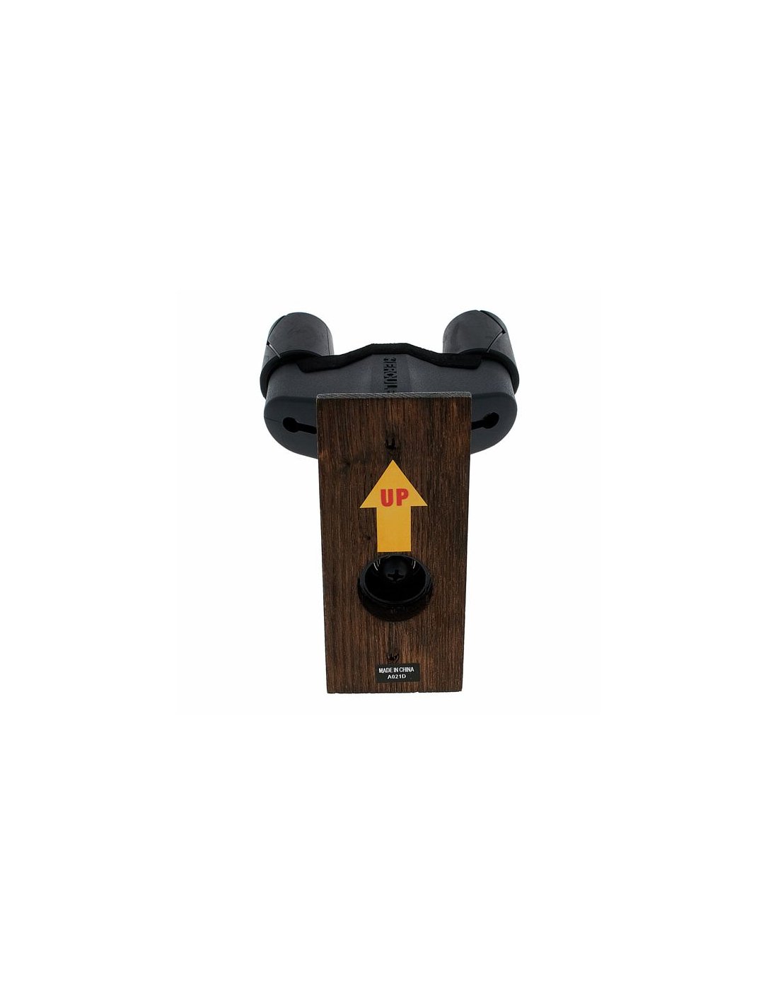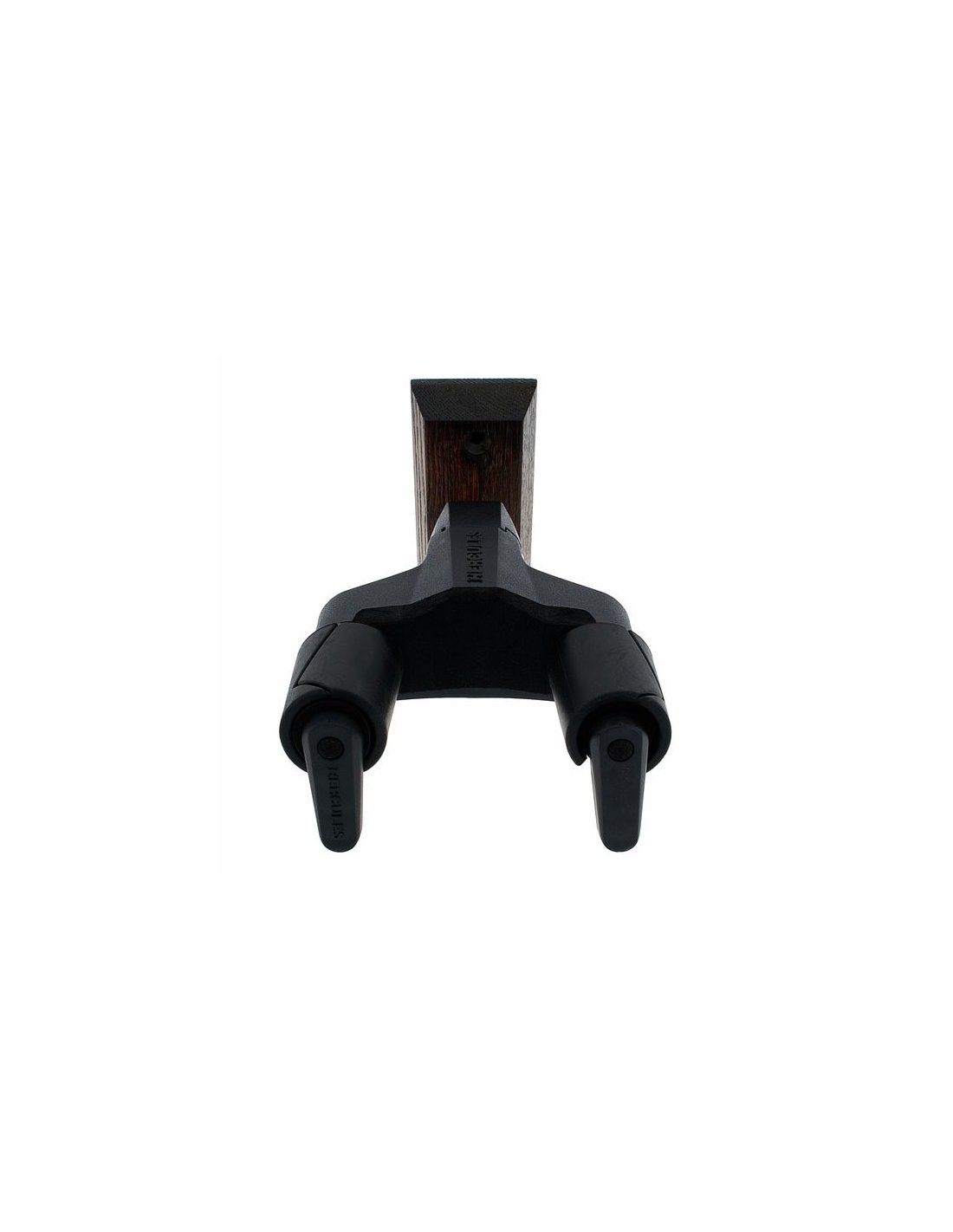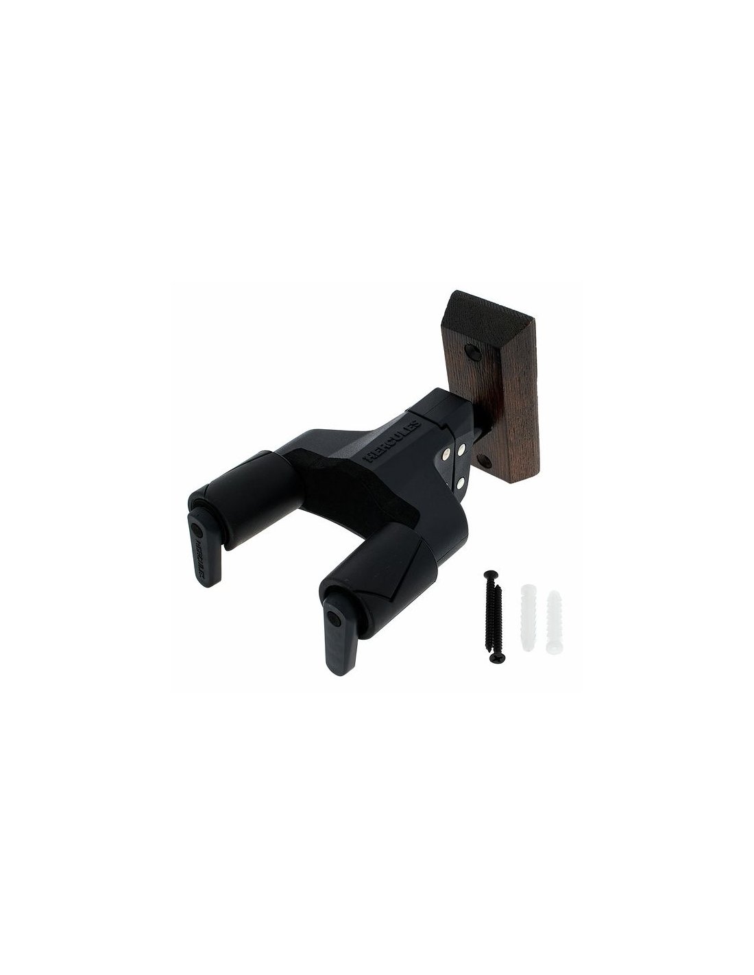 HERCULES GSP 38WBW PLUS is a guitar wall stand with dark brown wooden base, AutoSwivel AGS Plus bracket for multi-angle adjustments and secure locking of the instrument thanks to the Auto-Grip system, soft sponge coating for the parts in contact with the instrument, maximum load 7Kg.