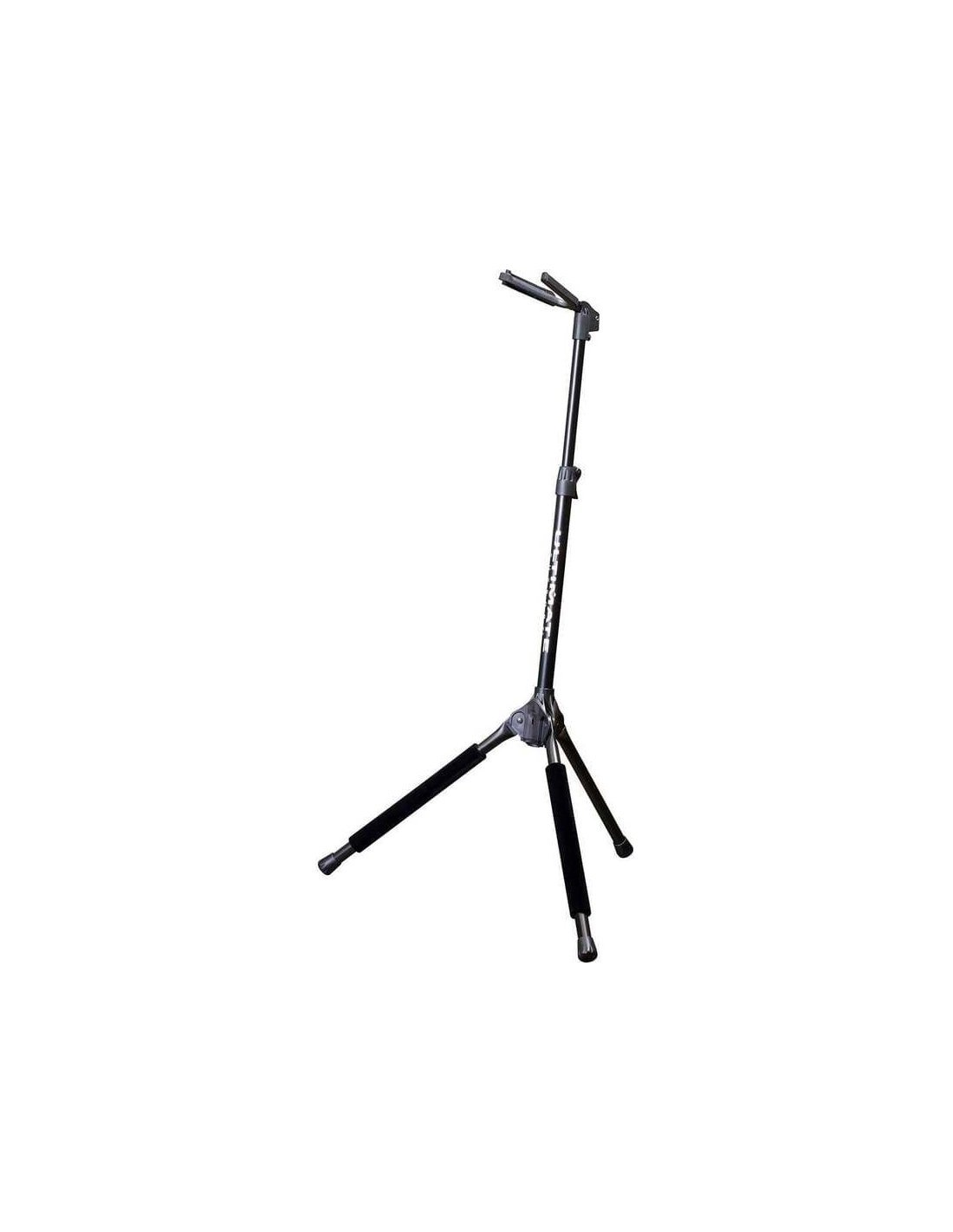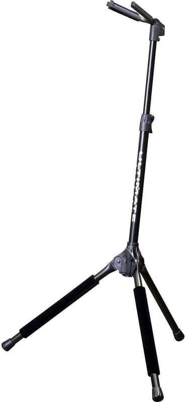 Ultimate GS-100+ is a fully foldable electric guitar and bass stand. It is equipped with a handle lock, pick holder guide and support brackets with
