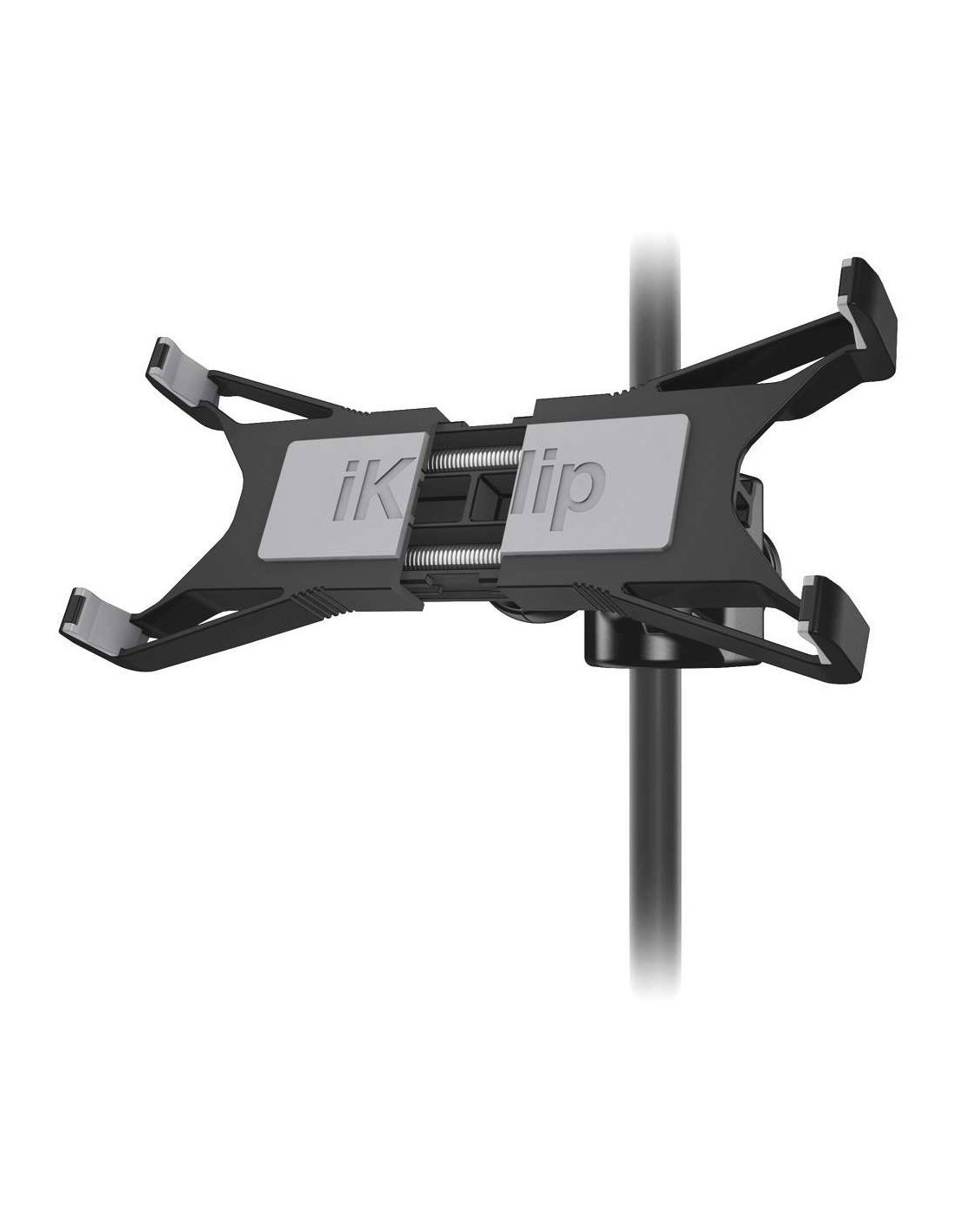 IK MULTIMEDIA iKlip XPAND is a universal tablet holder that can be mounted on a microphone stand with 4 expandable sockets for secure positioning, “Gorilla Grip” rubber surface, ball joint for angle adjustment, adjustable clamp. It includes the iKlip Stage Turning and Music Management App
