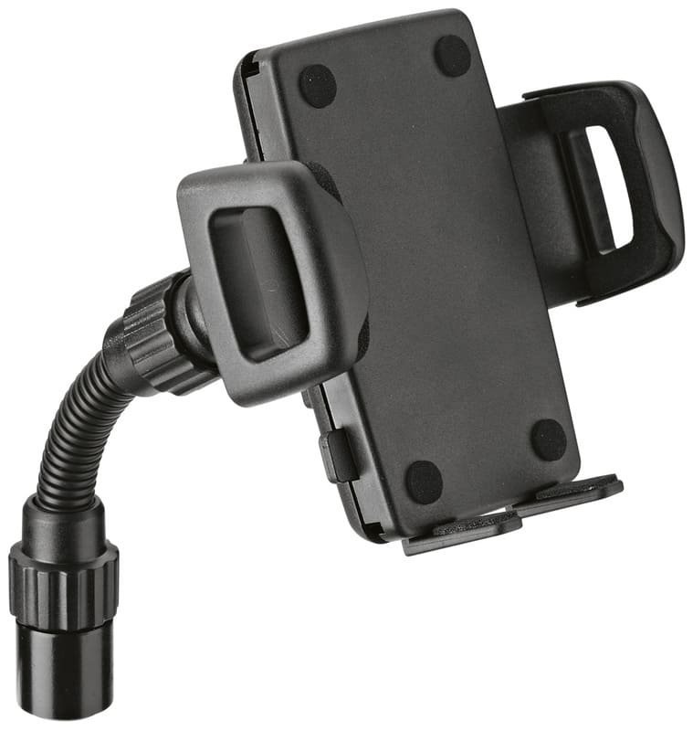 K&M 19748-300-55 SMARTPHONE HOLDER. Smartphone holder with flexible gooseneck, rotatable and tiltable 360°, suitable for all devices from 60 to 84 mm wide, screw-on to any microphone or table stand