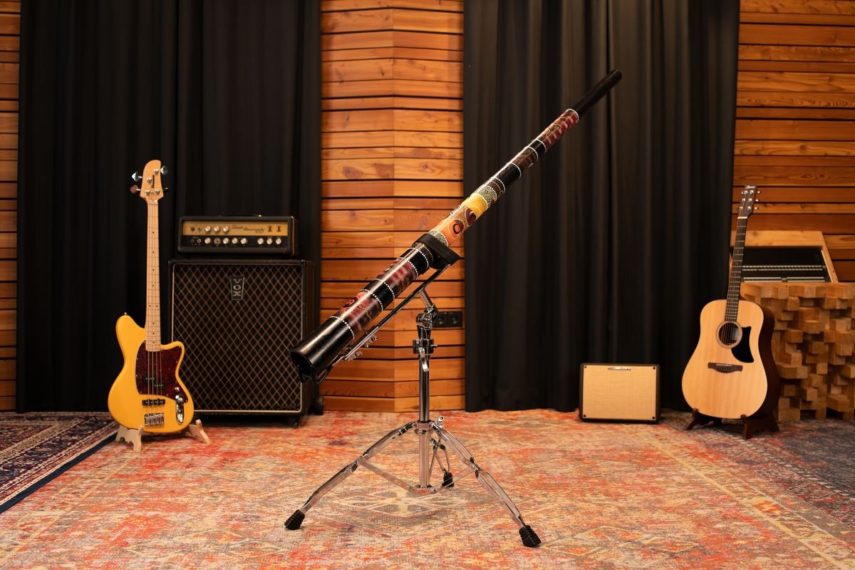 Play your didgeridoo in a sitting or standing position with the Meinl Percussion Pro Didgeridoo Stand. It is adjustable in height, length and angle to fit most didgeridoo sizes. Equipped with padded support and adjustable shoulder strap. Play your didgeridoo in a sitting or standing position It accommodates most of the sizes and shapes of didgeridoos Padded support with adjustable strap Adjustable height - Min. 23 1Ú2Ó Max. 37 3Ú4Ó/Min. 60 cm Max. 95 cm The chromed steel support fits digeridoo of various sizes Adjustable angle Memory lock