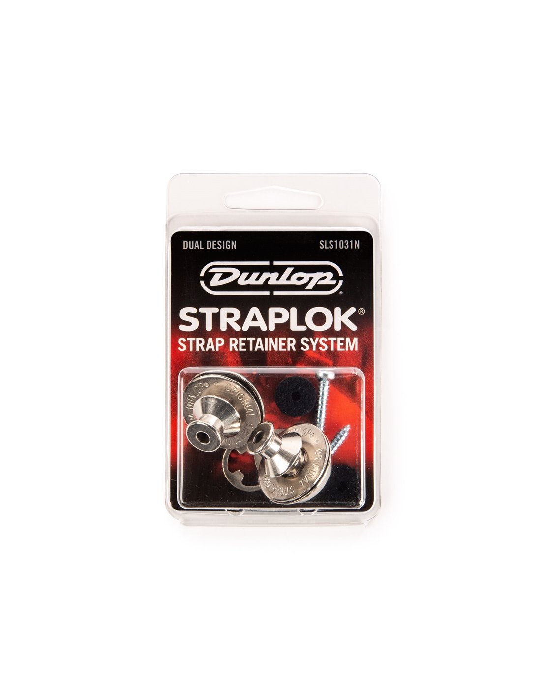 Jim Dunlop SLS1031N Nickel. The Jim Dunlop SLS1031N Nickel are a set of strap locks for guitars and basses that allow the strap to be attached and disconnected quickly and securely at the push of a button. Nickel finish.