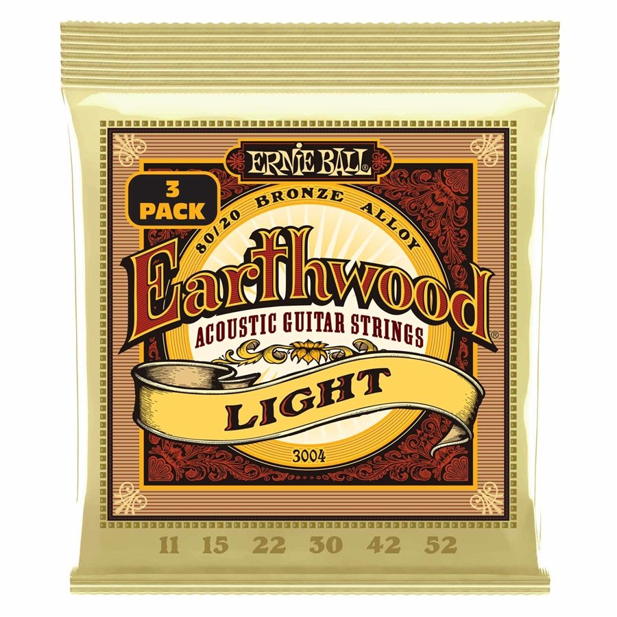 Ernie Ball 3004 EWD 11-052 Acoustic Guitar Strings Kit 3 Sets. The Ernie Ball 3004 EWD 11-052 Kit 3 Set are a set of three sets of strings for acoustic guitar, 80/20 bronze, with a light scale of .011 .015 .022w .030w .042w .052w