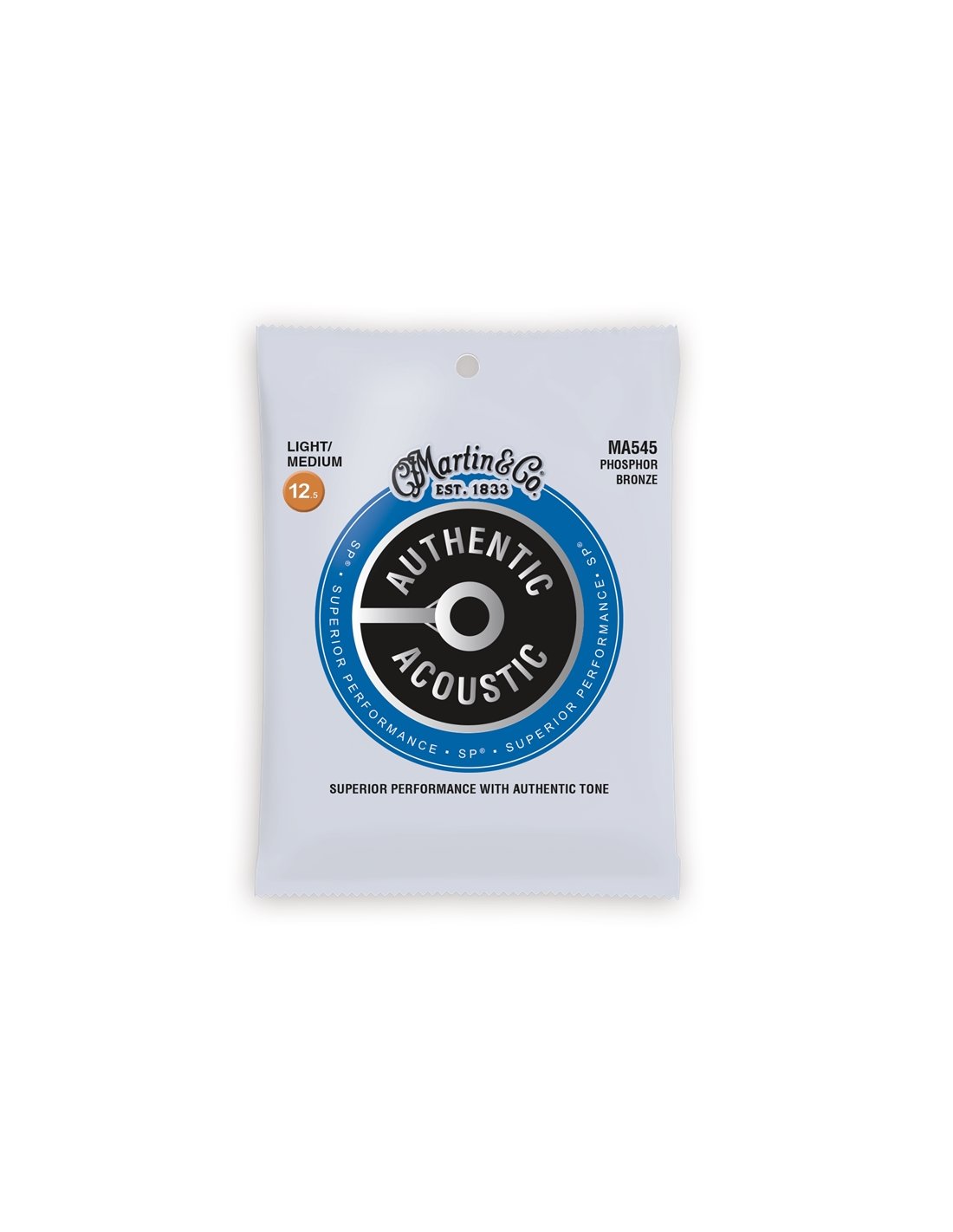 Diameters: 12.5-16.5-25.5-33.5-43.5-55 Martin & Co's MA545 acoustic guitar strings from the Authentic Acoustic SP® series are composed of a high-quality Phosphor Bronze wrap on wire that is ultra