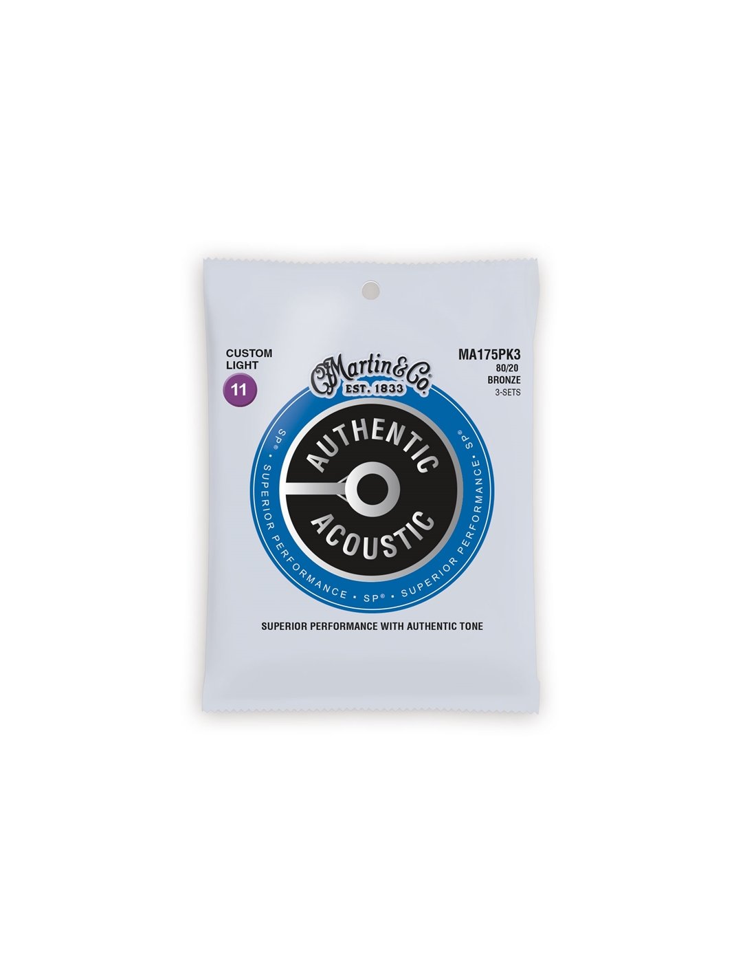 strings from the Authentic Acoustic SP® series are composed of a high-quality 80/20 Bronze wrap on wire that is extremely resistant to traction and corrosion. They offer a genuine and balanced tone, tuning stability and great playability. MA175 in Custom Light scale have the following diameters: 11-15-23-32-42-52