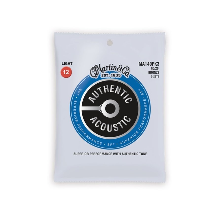 strings from the Authentic Acoustic SP® series are composed of a high-quality 80/20 Bronze wrap on wire that is extremely resistant to traction and corrosion. They offer a genuine and balanced tone, tuning stability and great playability. MA140 in Light scale have the following diameters: 12-16-25-32-42-54
