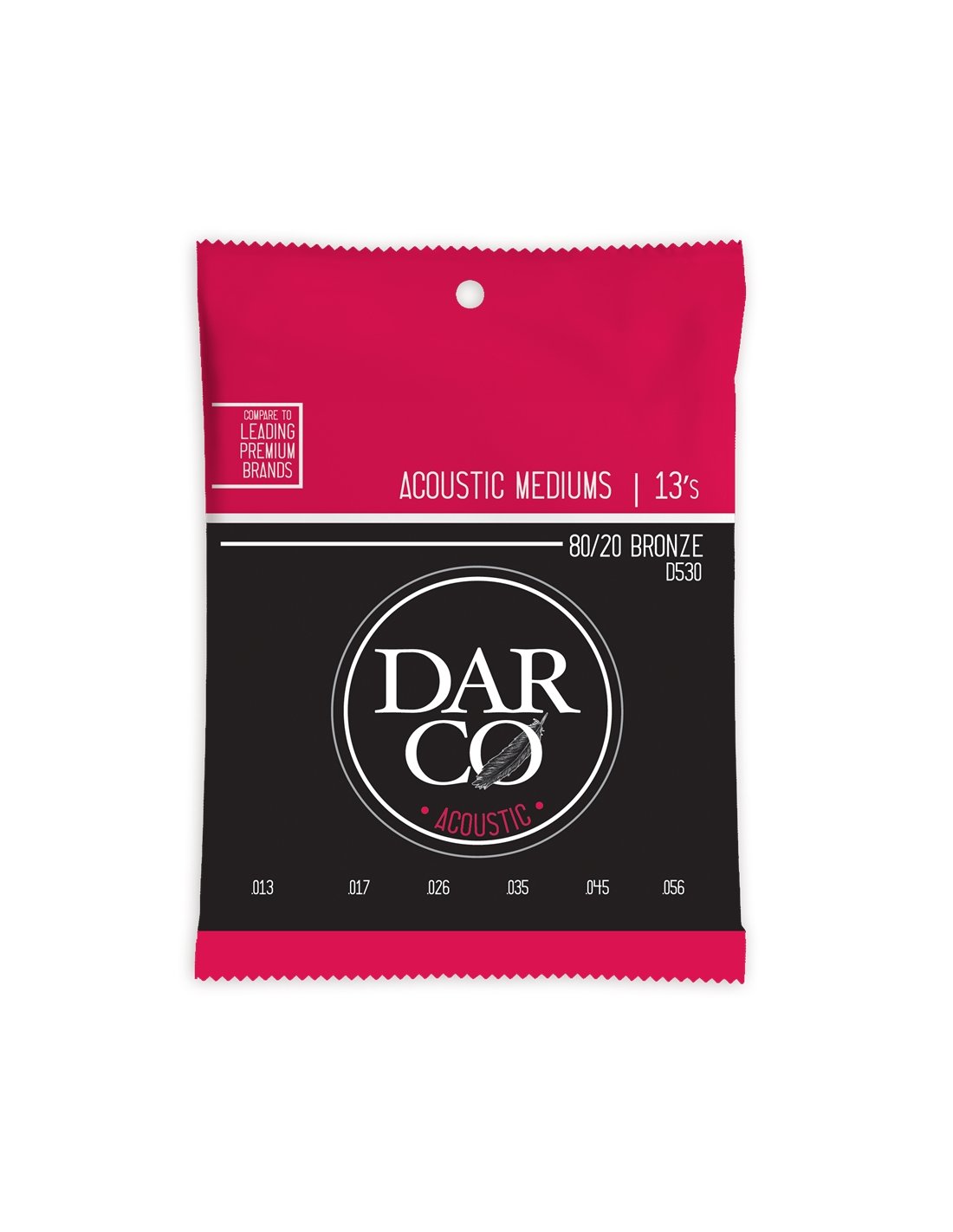 Guitars that are always new and ready thanks to Darco products, which by reducing the strings to what is really necessary and avoiding unnecessary frills that can only increase costs, have developed powerful, clear, balanced and long-lasting strings at an ultra-competitive price. D530 are formed by a tinned steel core and high-quality 80/20 Bronze wrap, Medium scaling and diameters: 13-17-26-35-45-56