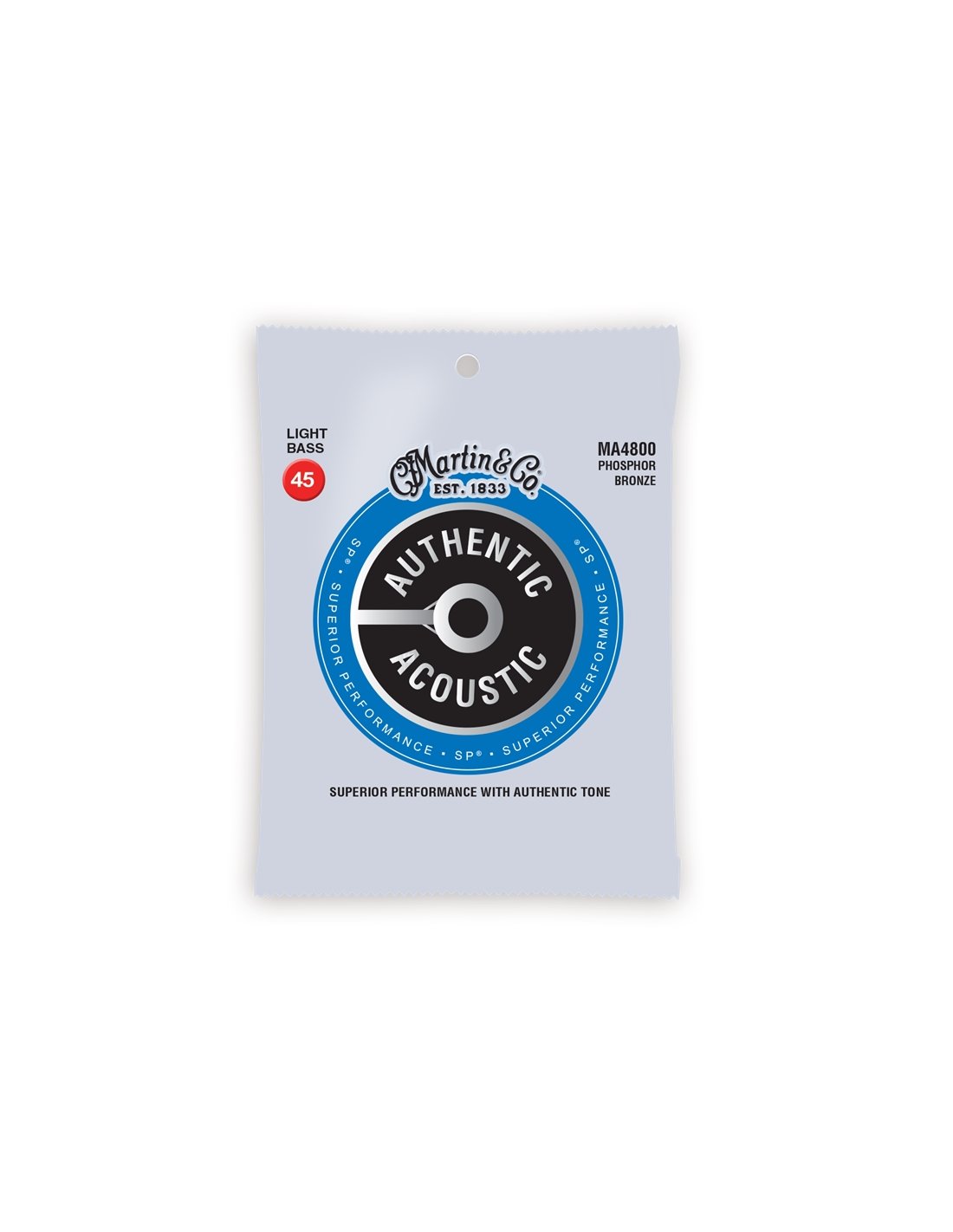 Martin Guitar's MA4800 strings are Light acoustic bass strings from Martin Guitars' Authentic Acoustic series that provide your instrument with excellent tuning stability and great playability. Thanks to the special coating, they offer excellent corrosion resistance. Scaling 45, 65, 80, 100. Martin Guitar's MA4800 strings are Light acoustic bass strings from Martin Guitars' Authentic Acoustic series that provide your instrument with excellent tuning stability and great playability. Thanks to the special coating, they offer excellent corrosion resistance. Scaling 45, 65, 80, 100.
