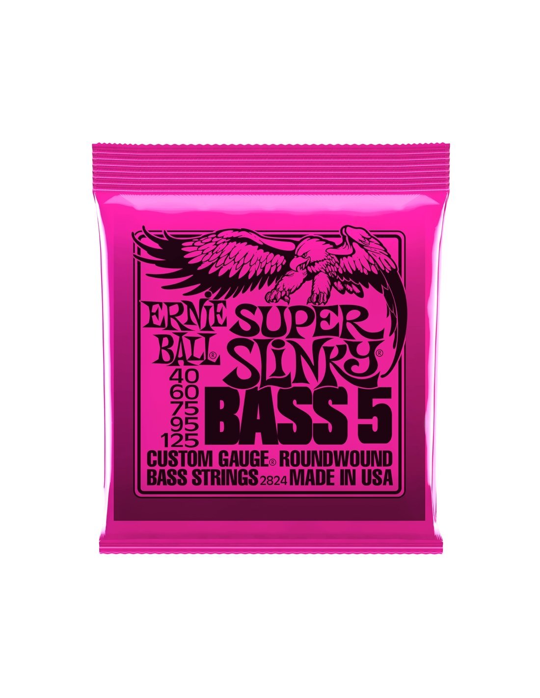 Ernie Ball 2824 5S SET SL NKL 40-125 Electric Bass Strings. The Ernie Ball 2824 5S SET SL NKL 40-125 is a nickel-wound 5-string electric bass string set with a scaling of .040 .060 .075 .095 .125