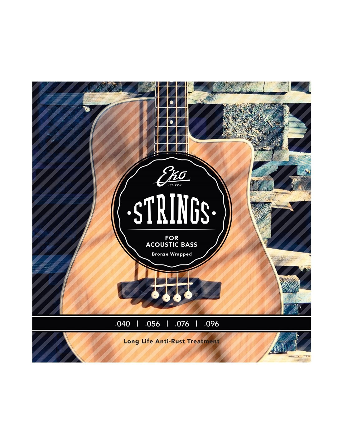 Eko Acoustic Bass Strings Set 40/96. The Eko Acoustic Bass Set 40/96 is a set of strings for 4-string acoustic bass, bronze wrapped with a scale of .040 .056 .076 .096