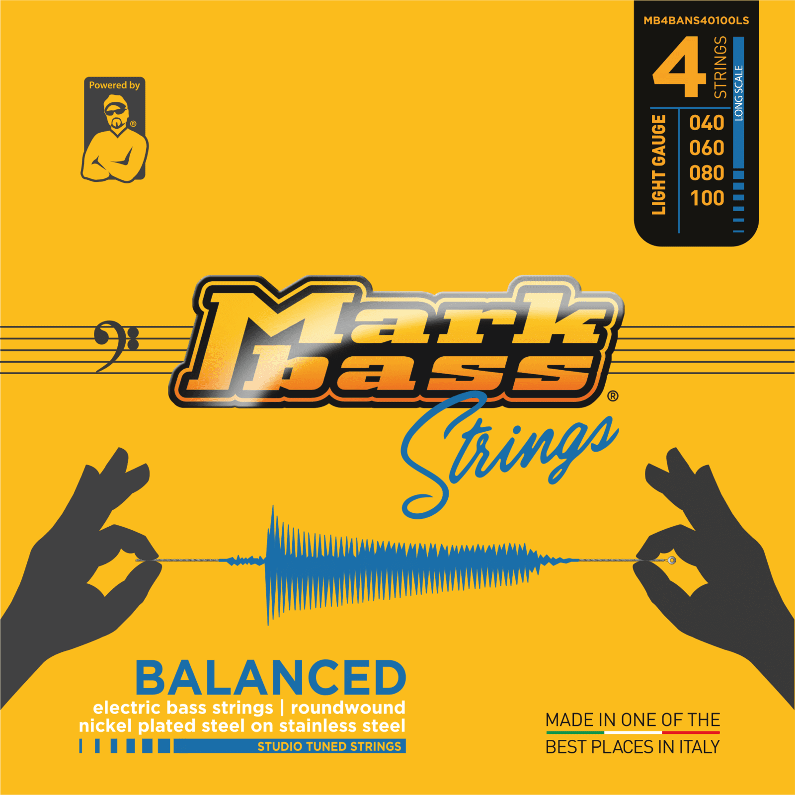 MARK BASS BALANCED NICKEL 40-100 4 STRINGS. Set of 4 strings for electric bass with stainless steel core and Nickel Plated Steel wrap. Scale 040, 060, 080, 100