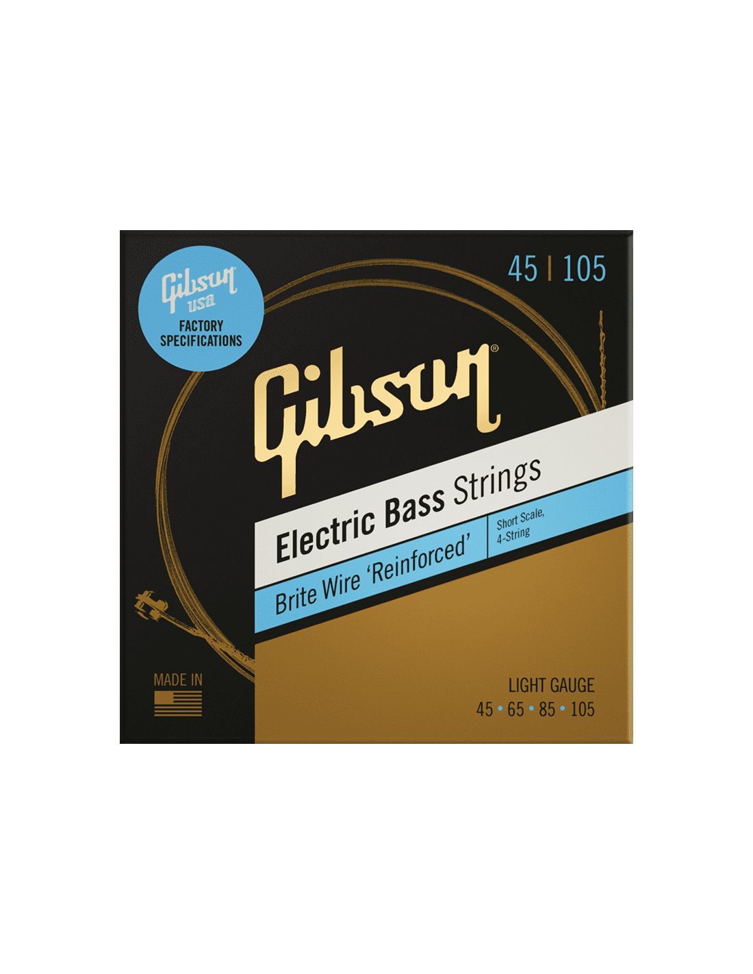 GIBSON SBG-SSL SHORT SCALE 4 STRINGS LIGHT 045-105. Set of 4 Brite Wires series strings for short scale electric bass, consisting of a hexagonal central core in steel and carbon and wrapped in nickel-plated steel,
