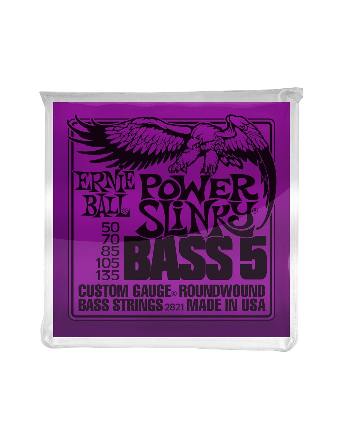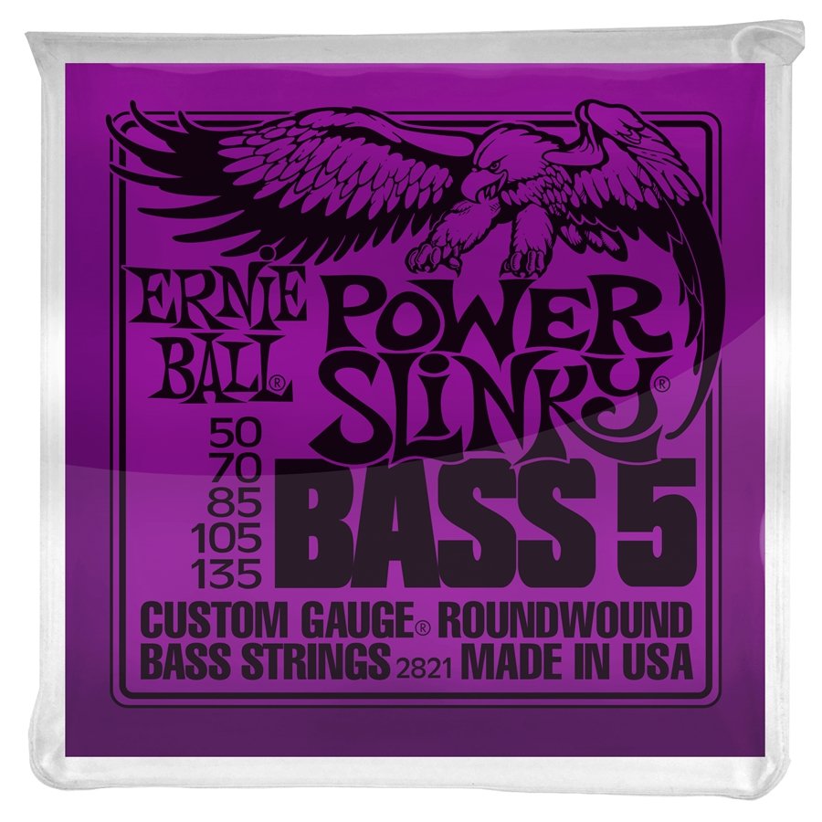 The Ernie Ball Power Slinky 5-string bass strings are wrapped so as to create a bright and balanced sound. Each string is made with the best raw materials in the beautiful Coachella Valley in southern California. Ernie Ball Slinky's bass string endorser list includes some of the world's best-selling artists. Diameters: .050, .070, .085, .105, .135