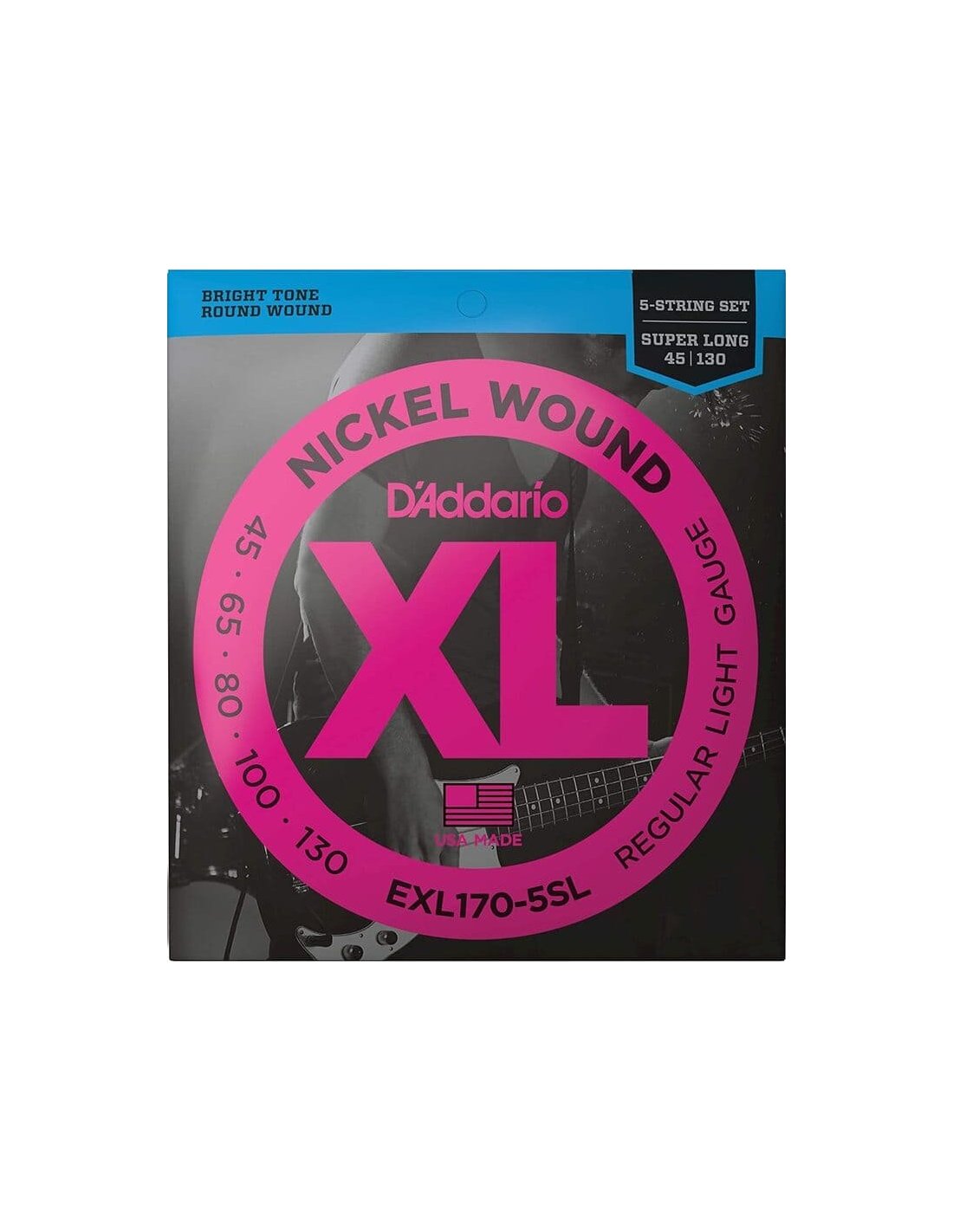 D'addario EXL170/5S is a 5-string bass set in a scale of 045-130. The strings have a nickel-plated steel precision coating on a hexagon-shaped core