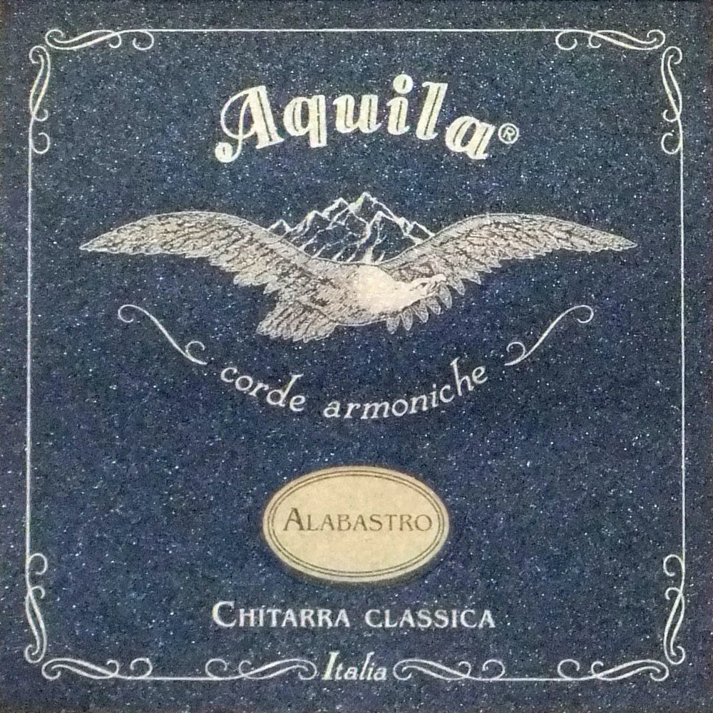 Aquila 20C Superior Tension Alabaster Series Classical Guitar Strings. The Aquila 20C Superior Tension Alabaster Series are a set of classical guitar strings composed of the first three strings made of Supernylgut monofilament and the three bass consisting of a Supernylgut multifilament core spun in silver copper, superior tension, with a scaling of .067 .083 .098 .071 .090 1.08