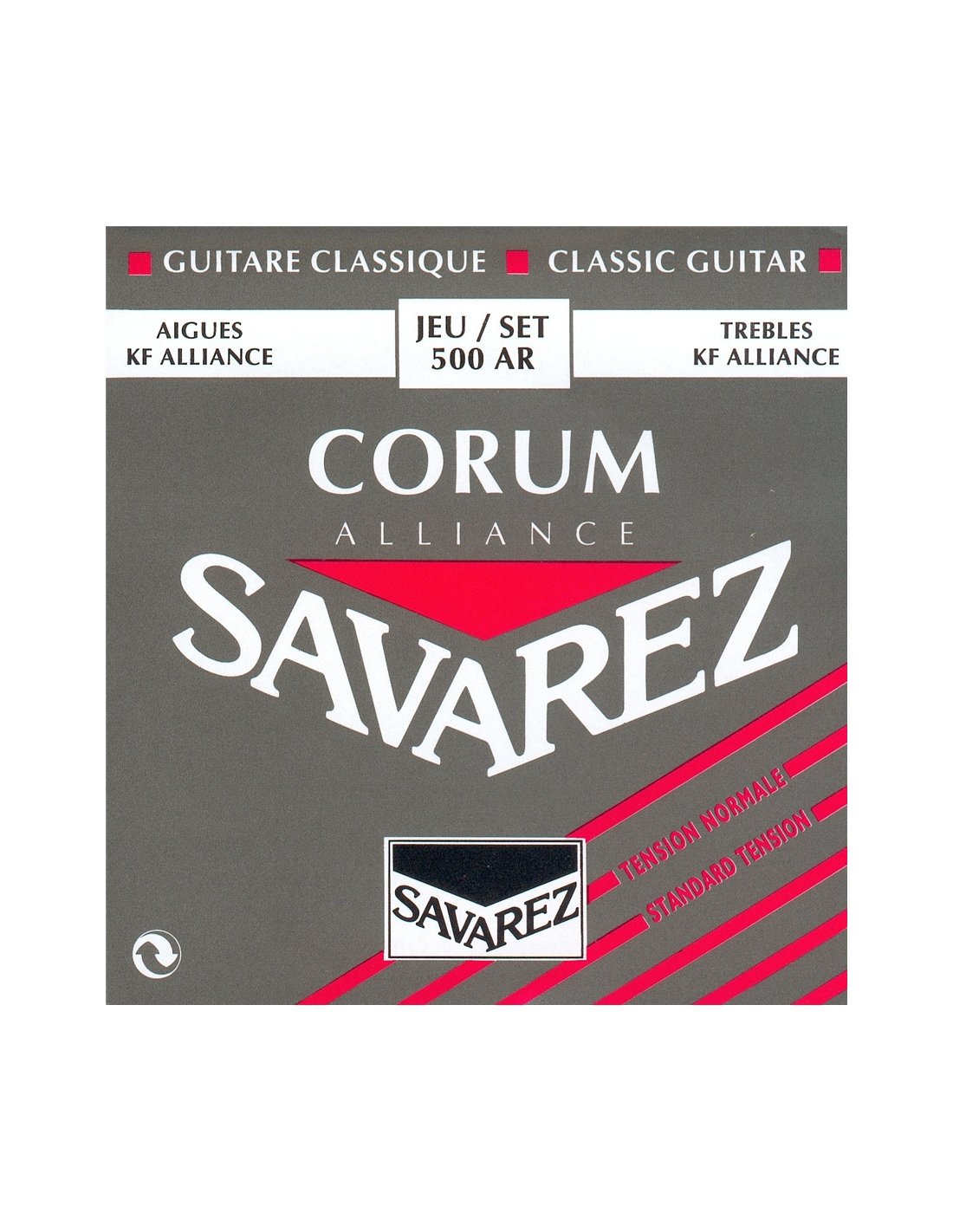 Savarez 500AR Classical Guitar Strings. The Savarez 500AR are a set of classical guitar strings with Corum basses, Alliance trebles, normal tension, .024 .027 .033 .027 .034 .043 scale