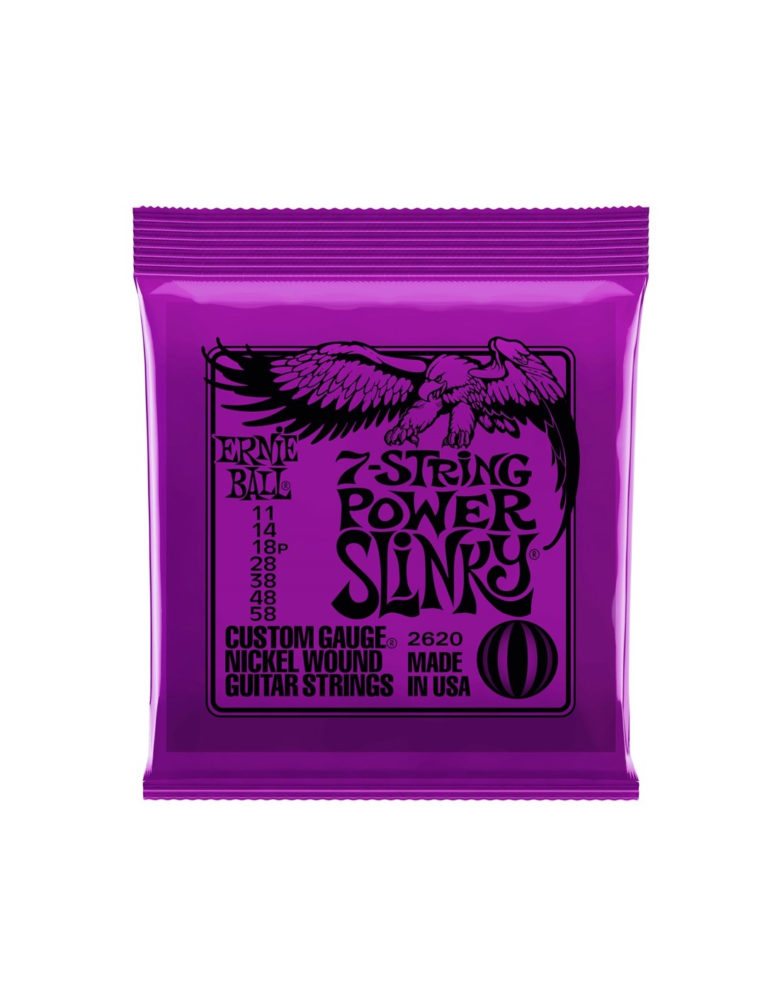 Ernie Ball 2620 7P SET SL NKL 11-58 Electric Guitar Strings. The Ernie Ball 2620 7P SET SL NKL 11-58 is a set of 7-string electric guitar strings, nickel wound with a scaling of .011 .014 .018 .028w .038w .048w .058w