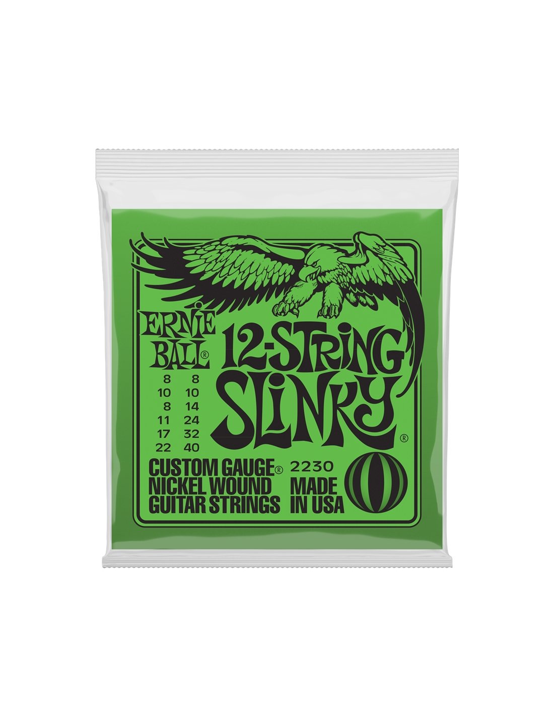 Ernie Ball 2230 12 Strings Electric Guitar Strings. The Ernie Ball 2230 12 Strings Electric are a set of 12 string electric guitar strings, nickel wound, scaling .008/.008 .010/.010 .014/.008 .024w/.011p .032w/.017p .040w/.022w