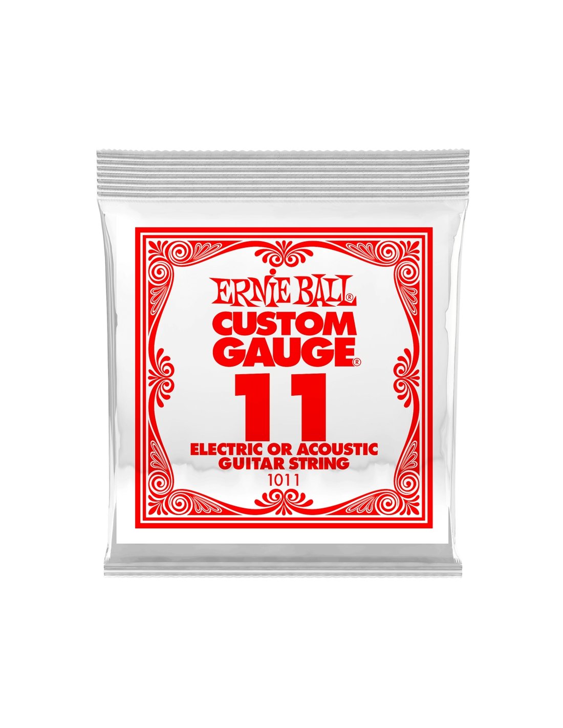 Made of tin-plated hardened high-carbon steel, used for electric and acoustic guitars. Ernie Ball has revolutionized the market by offering single strings of different diameters that allow guitarists to create customized mutes. Made of tin-plated hardened high-carbon steel, used for electric and acoustic guitars. Ernie Ball has revolutionized the market by offering single strings of different diameters that allow guitarists to create customized mutes.