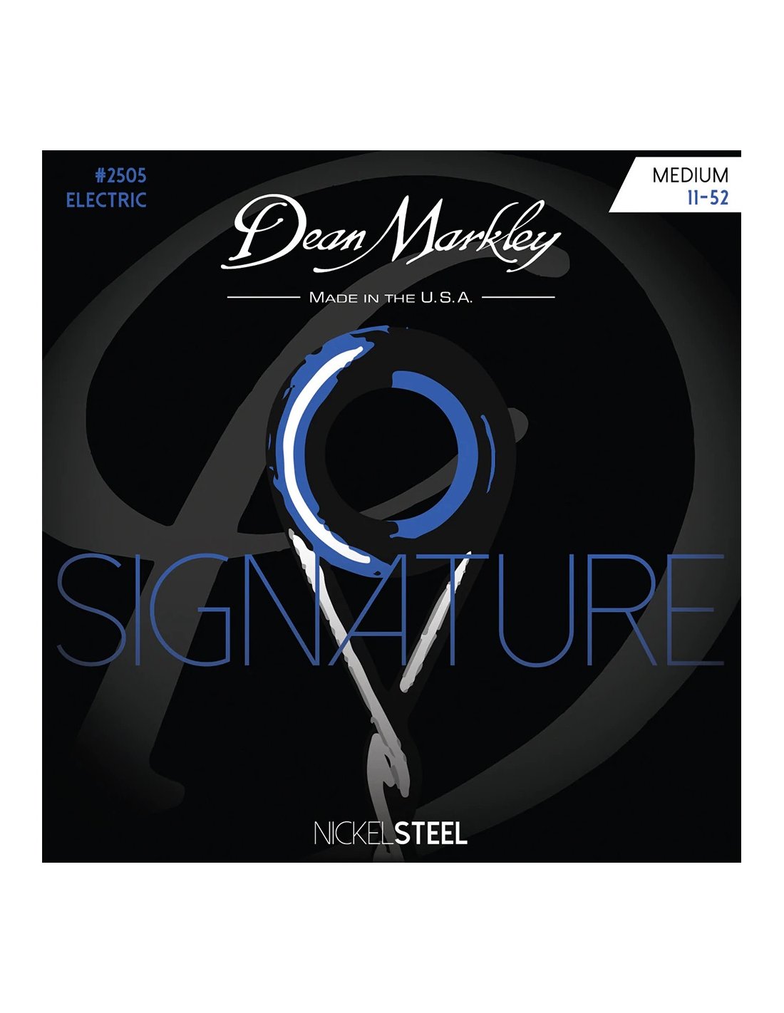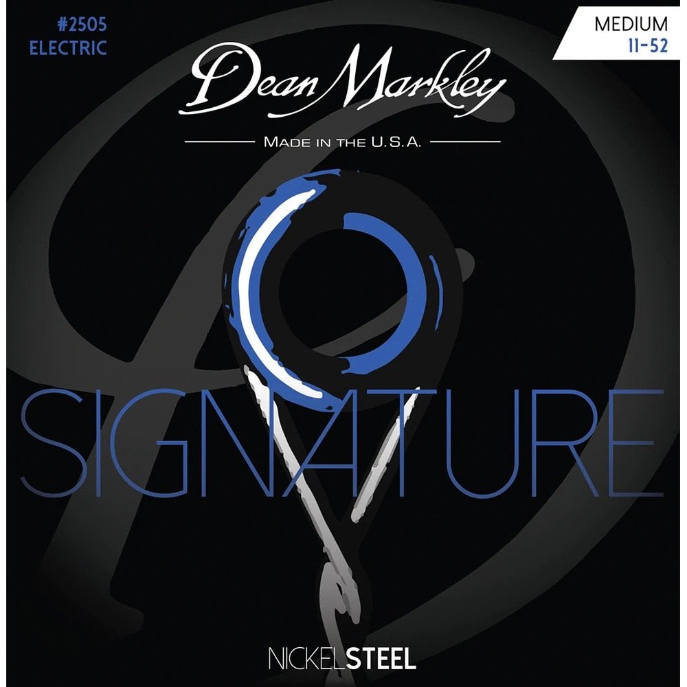 Signature Medium 11-52 Electric Guitar Strings NickelSteel Electric™ strings are Dean Markley's cornerstone and have been used and loved for decades by thousands of professionals around the world. With the nickel-plated steel slowly wound on a hexagonal core, the outer shell of the rope maintains 100% contact with the inner core. The result is a string that vibrates with maximum sustain, creating a warm and full sound characteristic of classic rock. The core-to-wrap ratio also makes bending easier than other strings. These are the reasons why we put our signature on them.