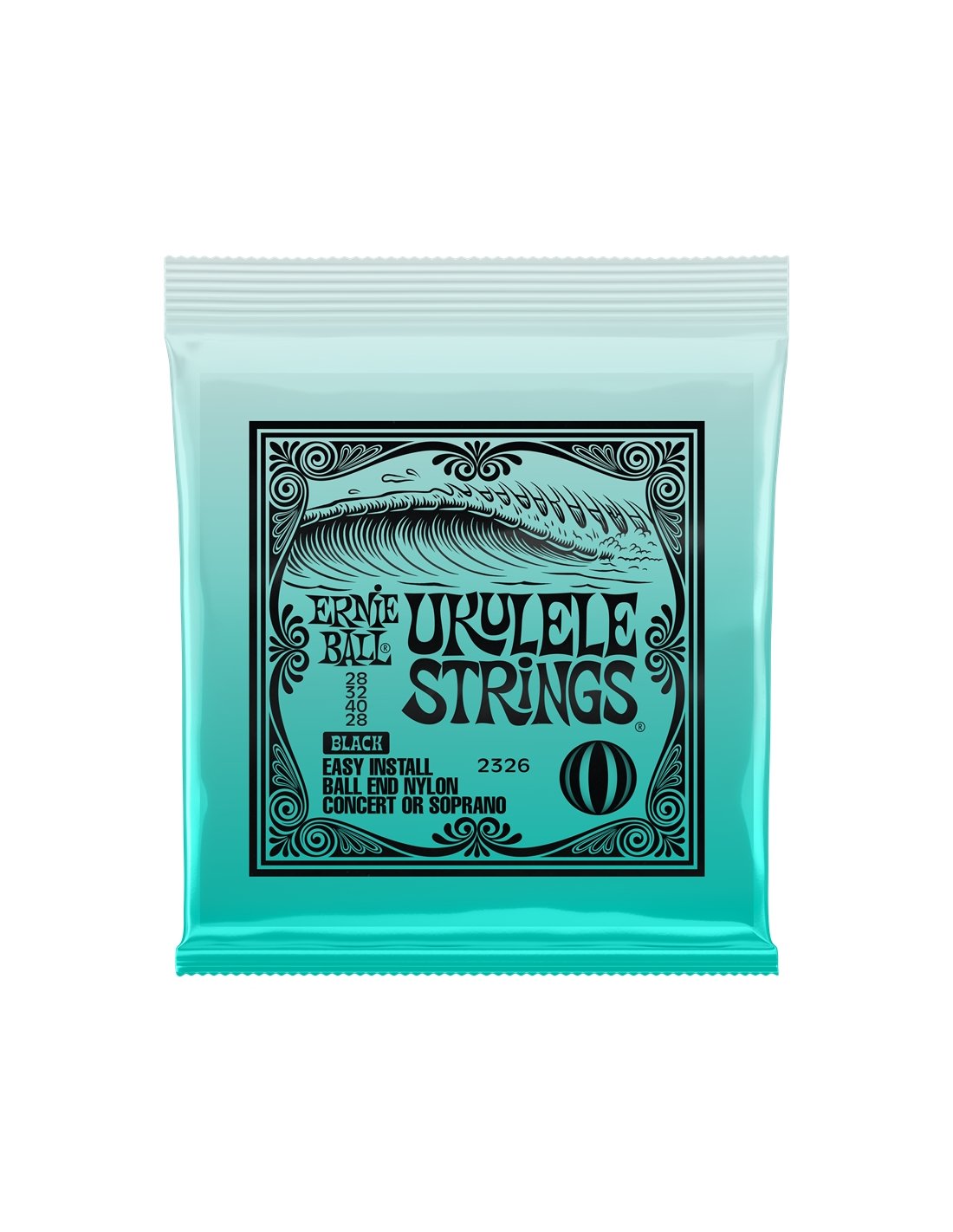 fast and the tuning stability is significantly improved.2326 Nylon Ukulele Strings Black is Ernie Ball's set of strings for soprano and concert ukulele with scaling .028, .032, .040, .028. A single 100% Nylon filament for a bright, balanced traditional Ukulele sound with excellent projection. 2326 Nylon Ukulele Strings Black come with an intriguing black color and thanks to the ball-end construction, the installation is simple and