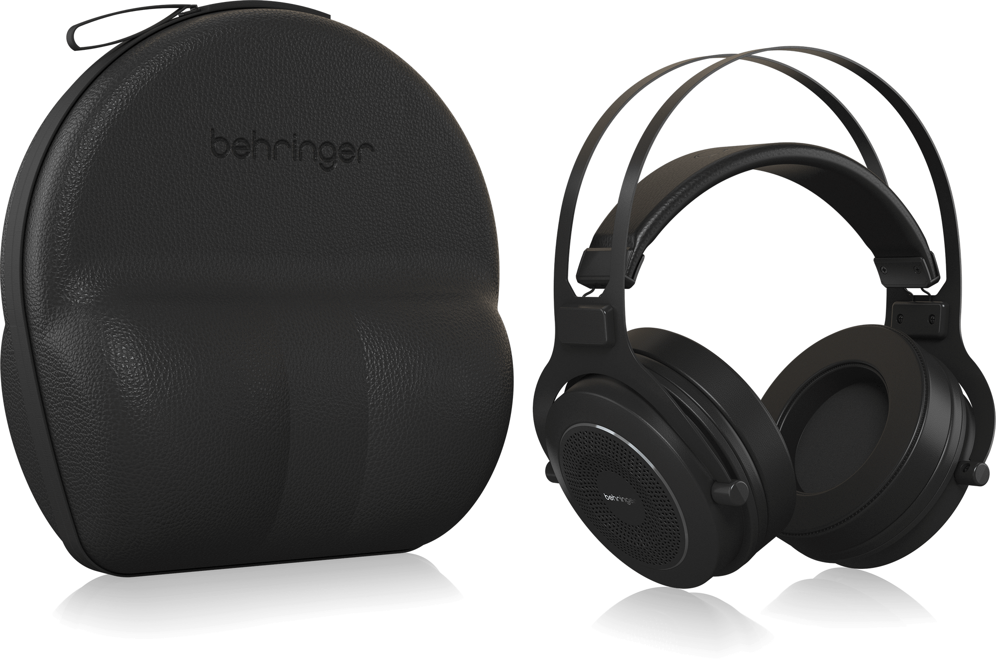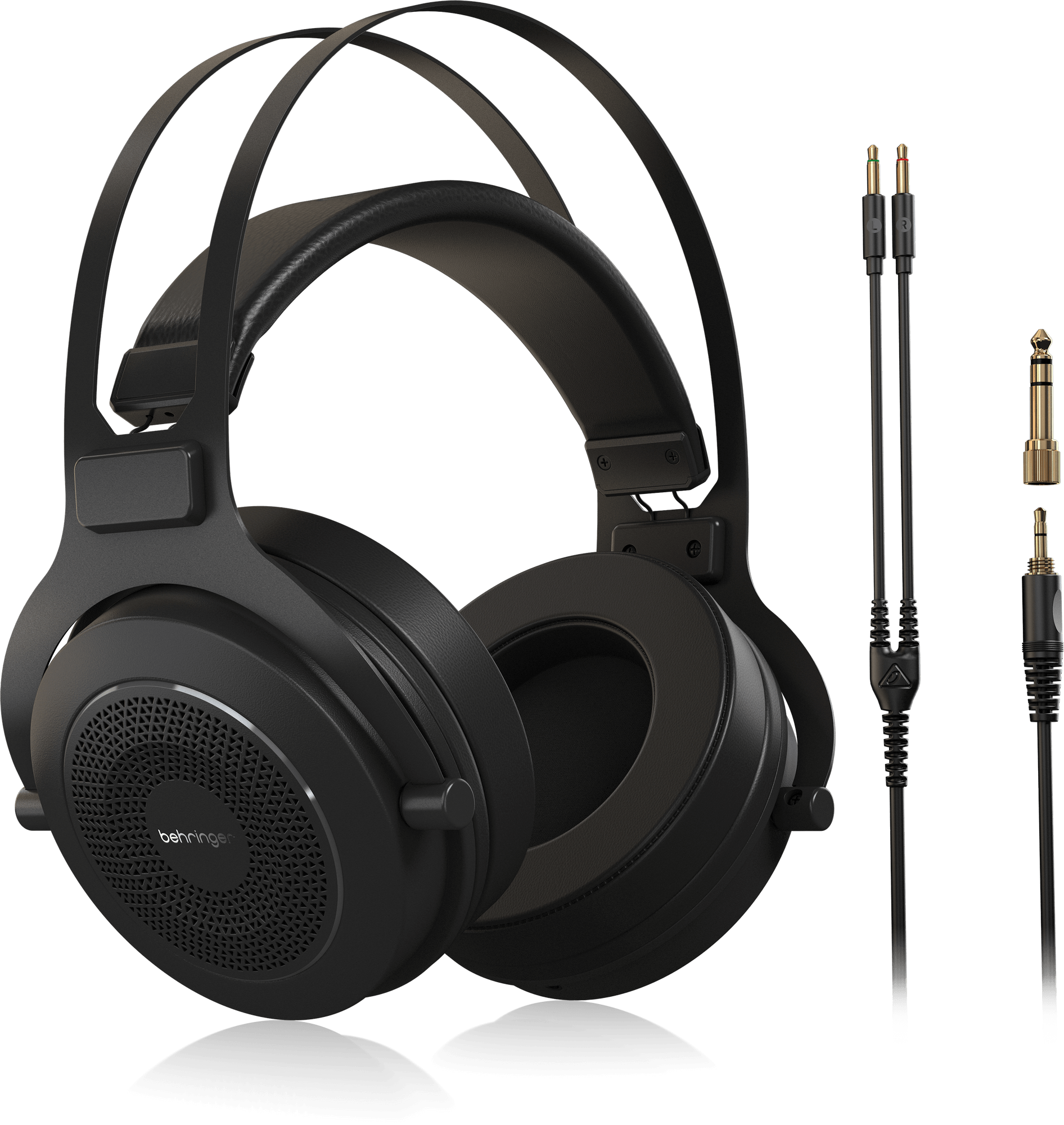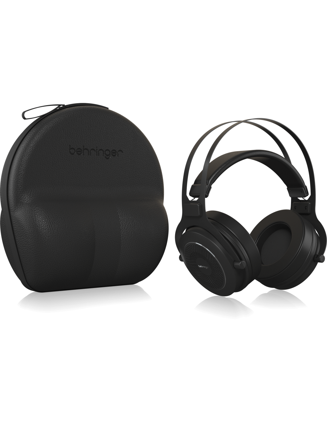 BEHRINGER OMEGA STUDIO HEADPHONES. Open Back headphones for studio applications, with 50mm neodymium drivers for an extended frequency response of 10Hz - 28kHz, ergonomic and padded earcups, 3m audio cable detachable from both earcups with 3.5mm TRS mini jack connector. Includes soft carrying case and gold-plated 6.3 mm TRS jack adapter