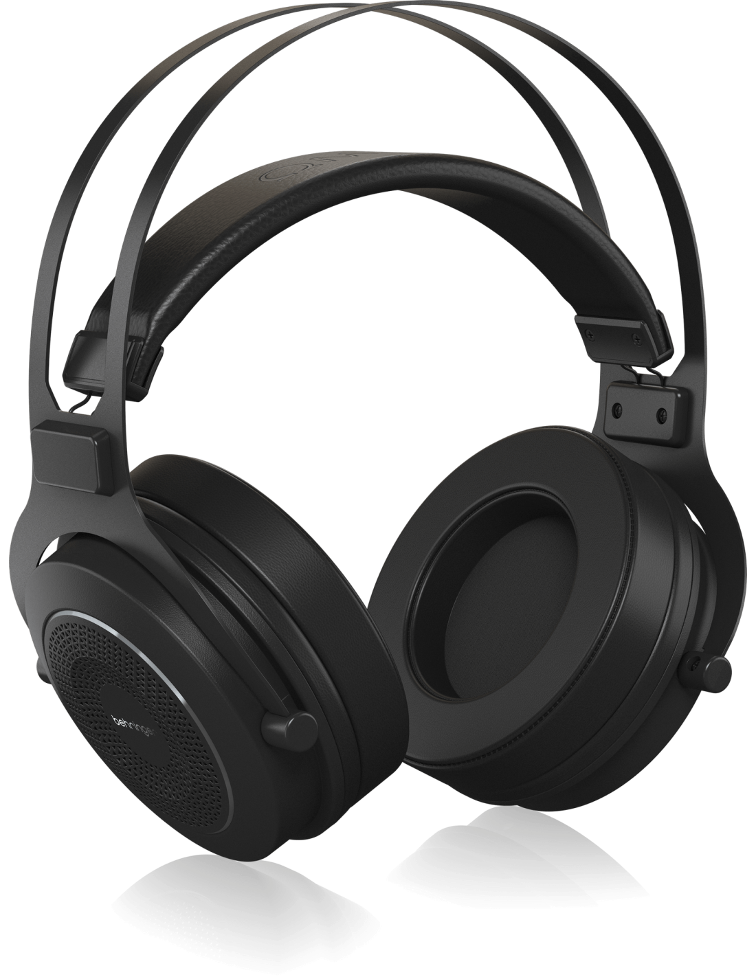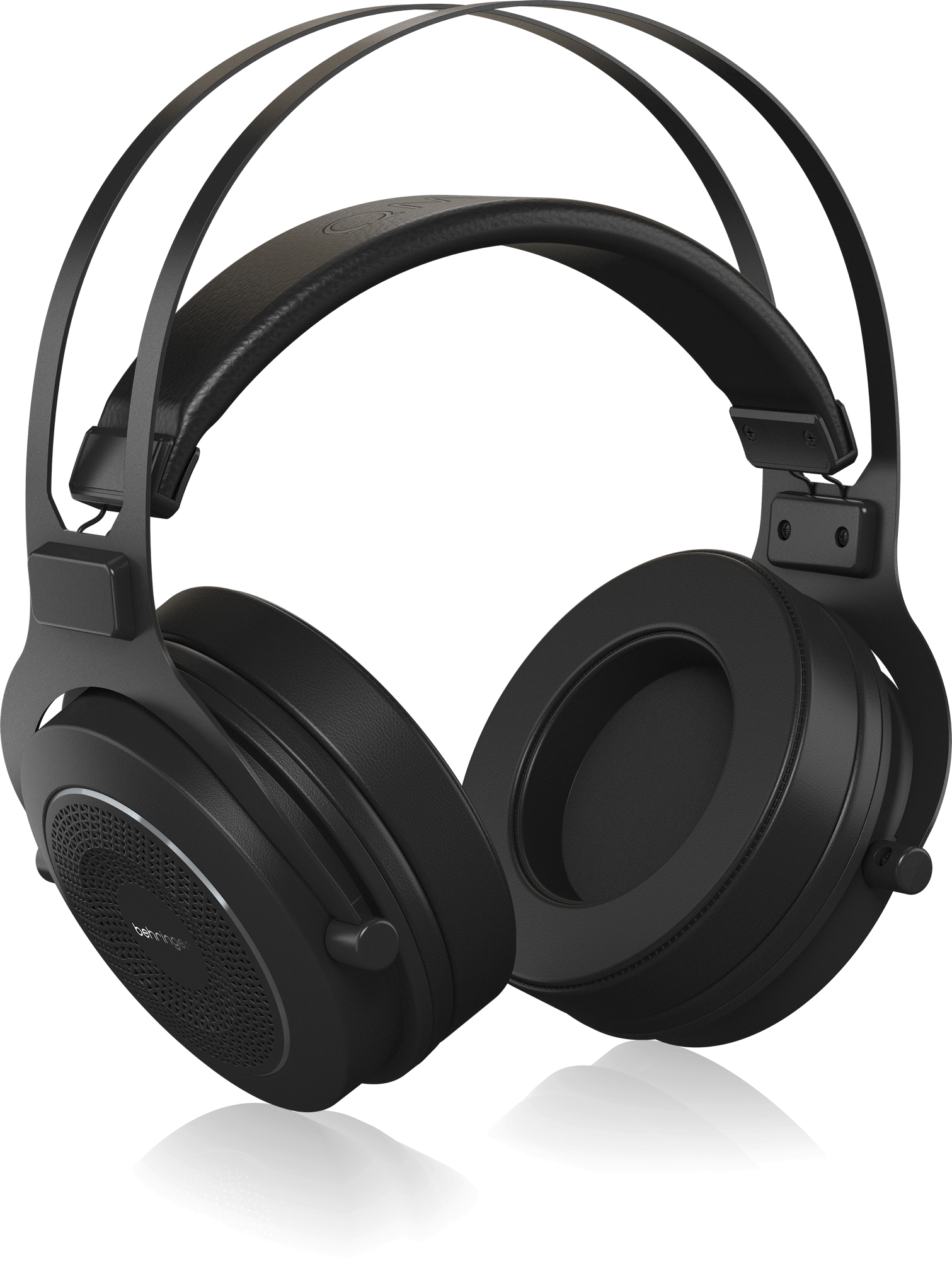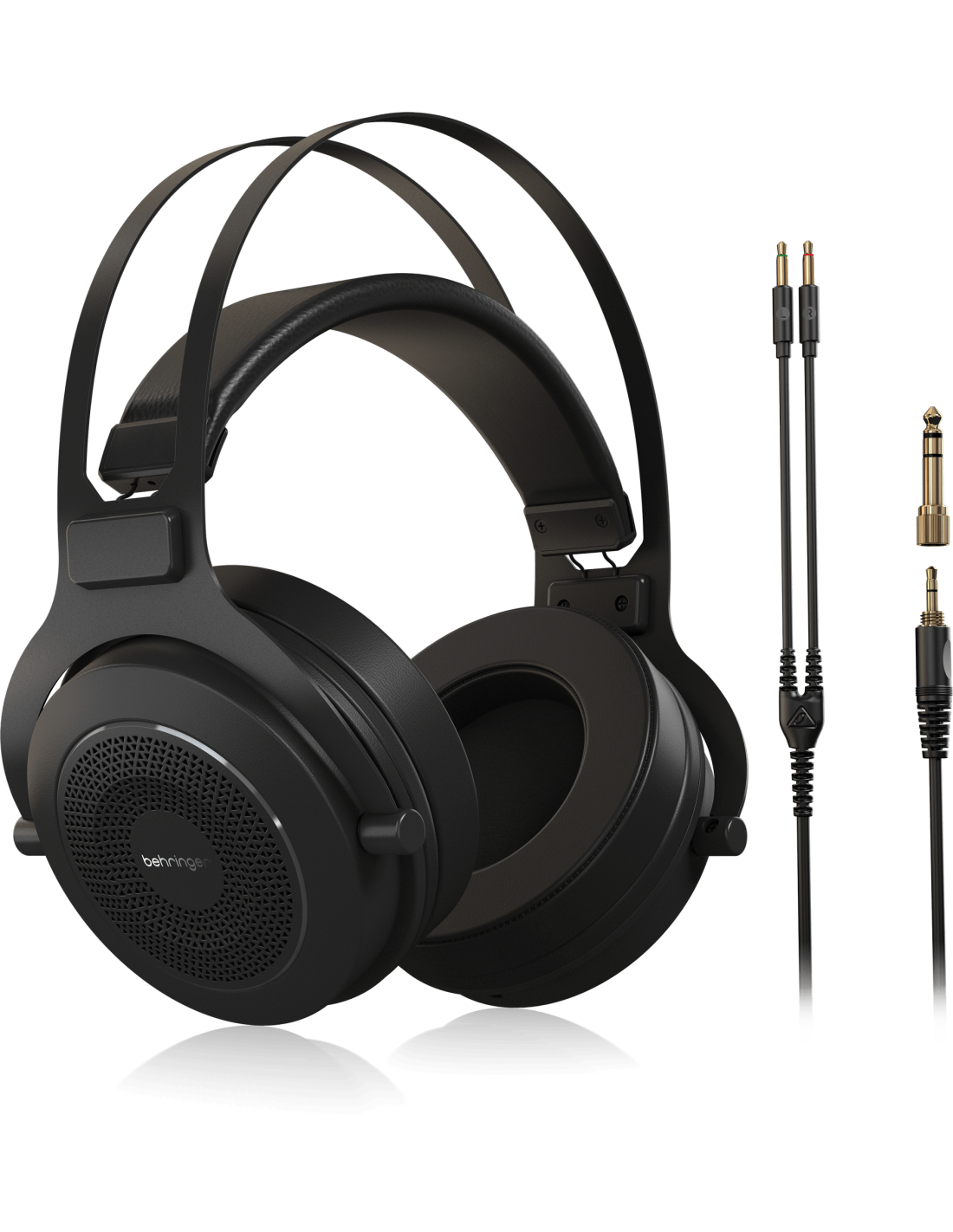BEHRINGER OMEGA STUDIO HEADPHONES. Open Back headphones for studio applications, with 50mm neodymium drivers for an extended frequency response of 10Hz - 28kHz, ergonomic and padded earcups, 3m audio cable detachable from both earcups with 3.5mm TRS mini jack connector. Includes soft carrying case and gold-plated 6.3 mm TRS jack adapter