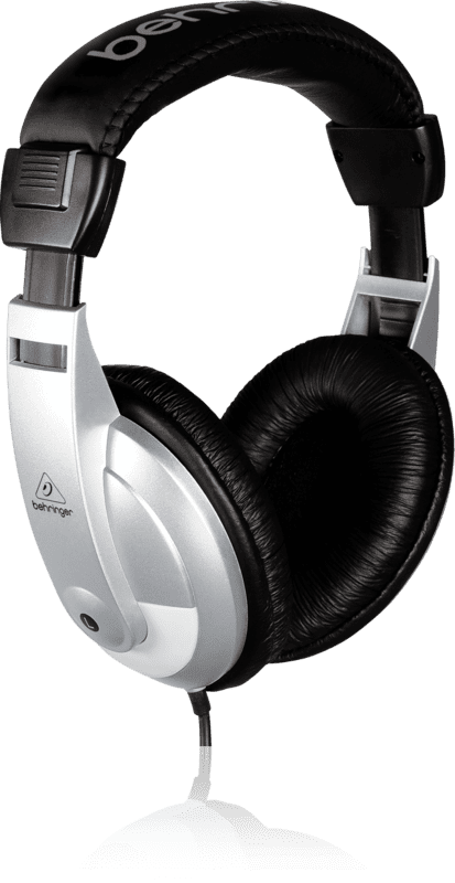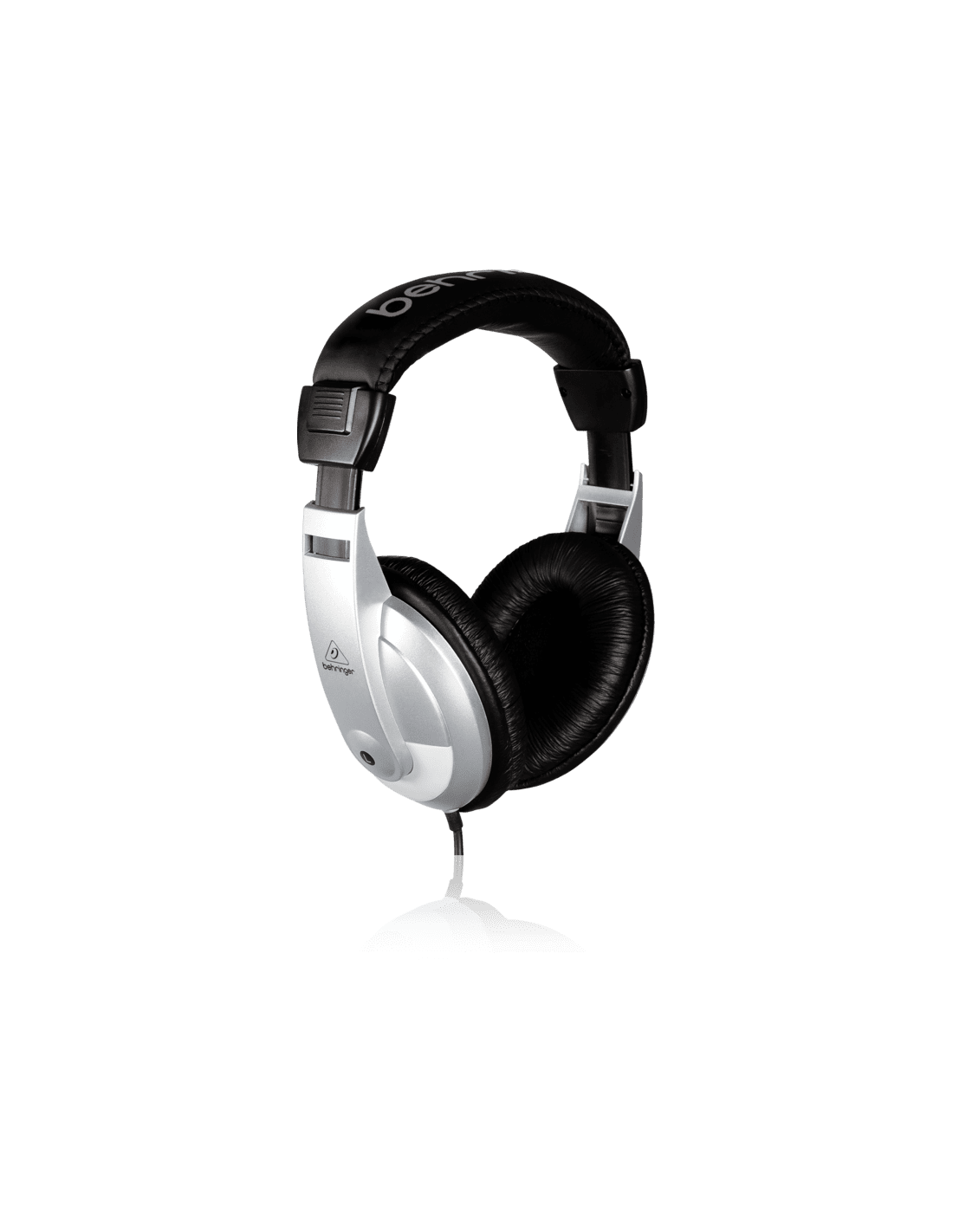 BEHRINGER HPM1000. Grey closed stereo headphone. Technical features include 32 Ohm impedance, plastic structure with headband and padded earcups.