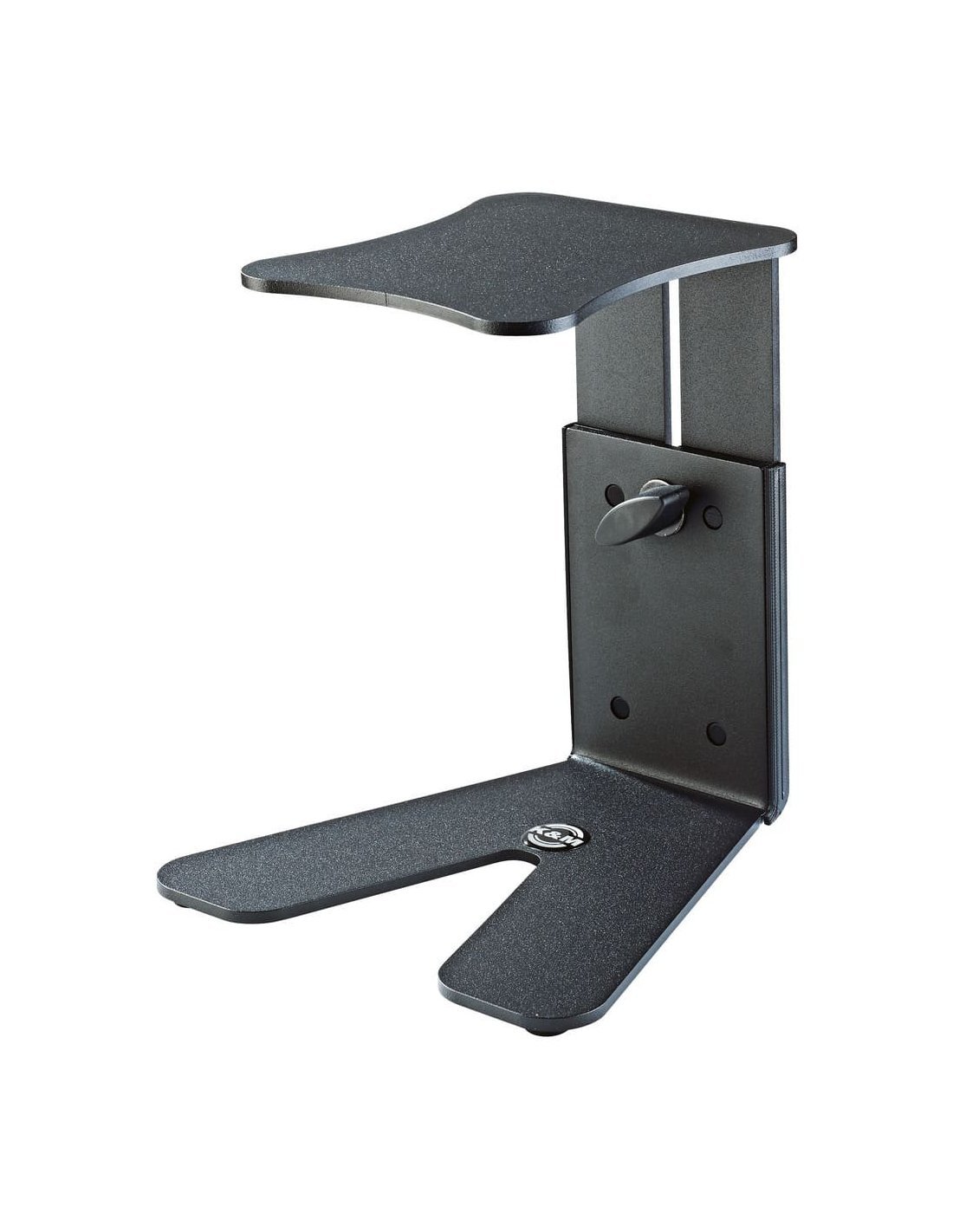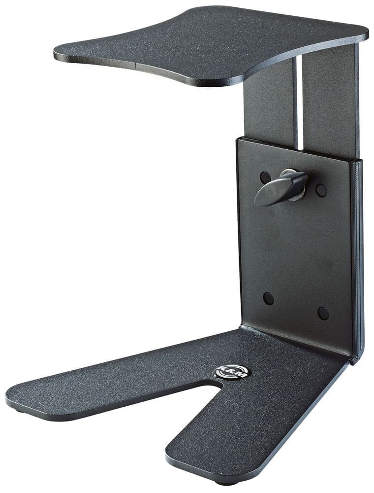K&M 26772-000-55 TABLE MONITOR STAND. Steel desktop stand for studio monitors. Recommended maximum load 15Kg, table top dimensions 15x17cm, height adjustment up to a maximum of 25cm. Equipped with 4 rubber pads to filter the noise on the stand