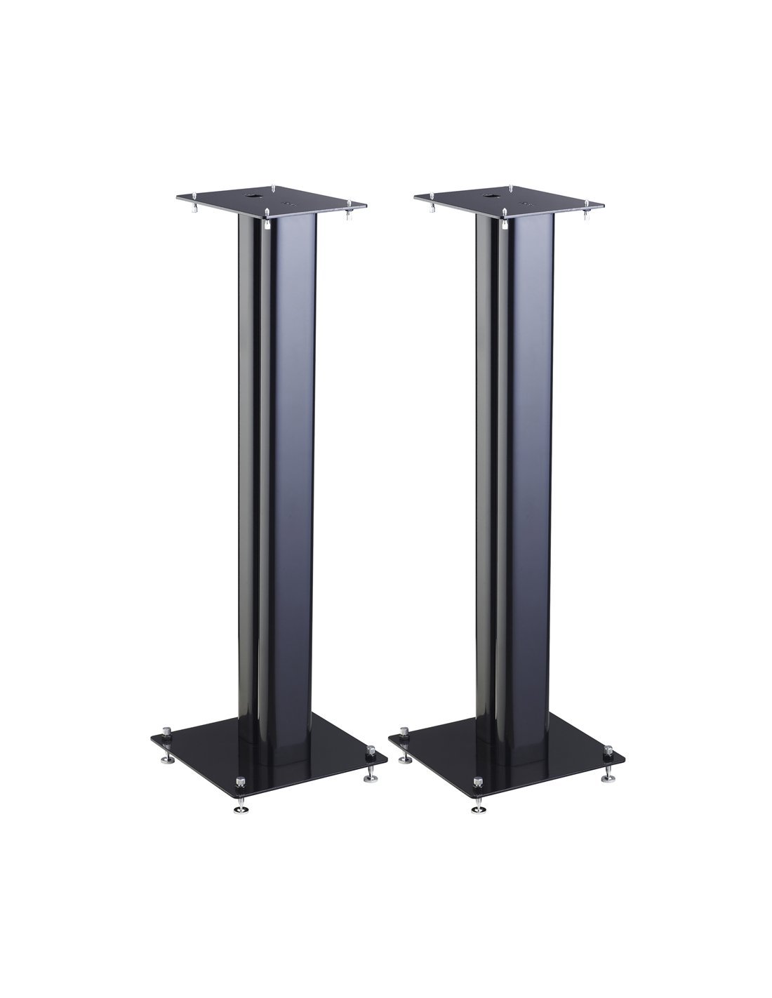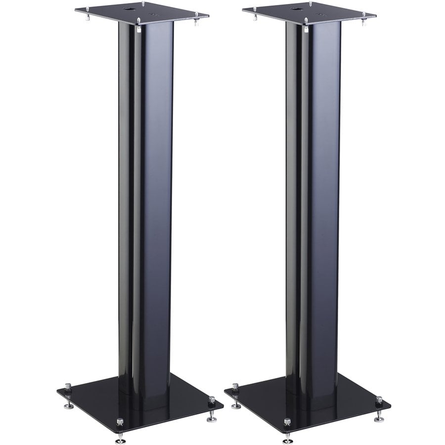 Pair of fixed-height audio monitor stands composed of two solid vertical steel profiles.
