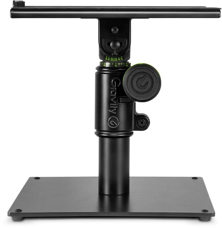 GRAVITY SP3102 is a studio monitor stand with adjustable height and inclination and a 25cm rubber-covered support plate with anti-tilting system. It can support up to 25 kg of weight, can be tilted up to 15° and rotated