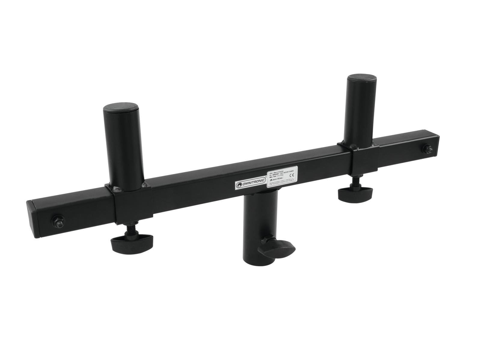 OMNITRONIC GB-2 STAND ADAPTER. Mini T-Bar stand structure for supporting 2 small speakers, with 35mm flange and locking bolts. Maximum load per support 15 Kg.