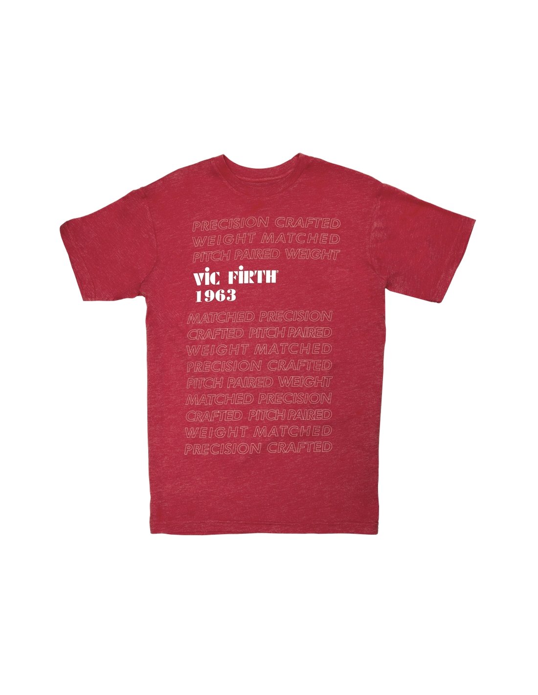 This soft, lightweight t-shirt features a bold graphic print on the front that celebrates the excellent craftsmanship of Vic Firth chopsticks over the past 60 years. A small VF logo under the back collar completes the design of this mottled red t-shirt. Available in sizes from small to 2XL, this t-shirt has a relaxed and square fit and fits the indicated size perfectly.