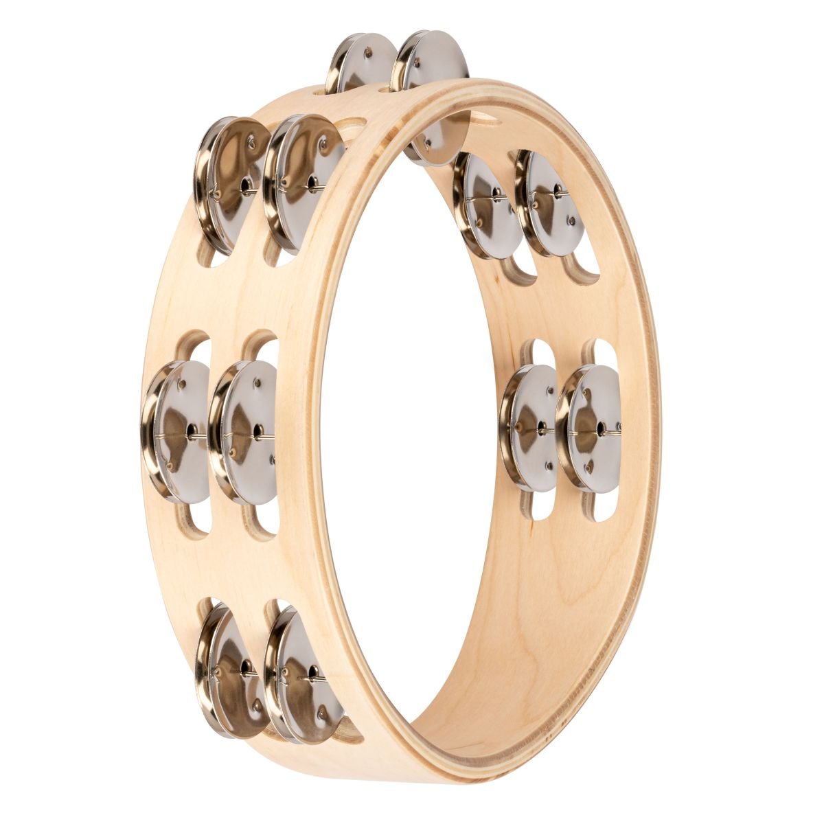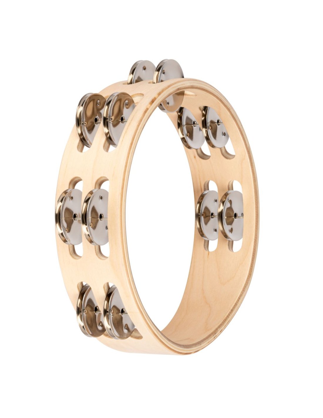 'The NINO wooden tambourines feature a sturdy wooden frame and a beautiful sparkling sound. Available in a variety of diameters, these tambourines produce a bright, sharp sound with good projection. The chrome-plated steel jingles add just the right amount of accent to virtually any musical style. Material: maple wood frame, nickel-plated steel jingles Features: Brilliant and sharp sound Durable wooden frame Type: 1 row, 6 pairs of jingles Diameter: 20cm/8"'