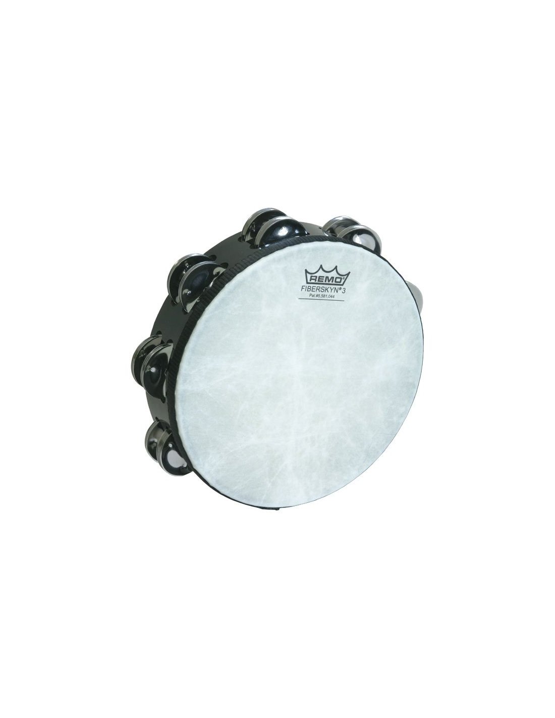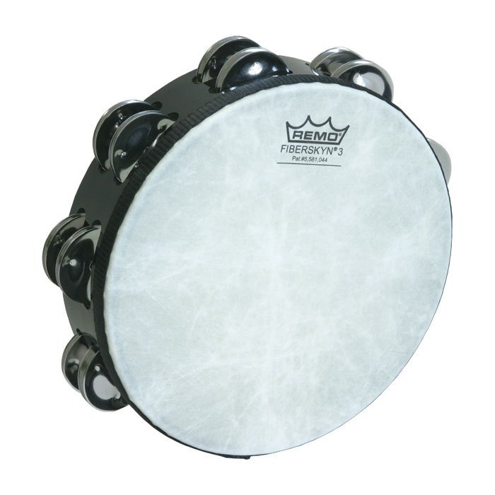 REMO TA-5208-70 TAMBOURINE 8" BLACK - FIBERSKYN. 8" tambourine made of Acousticon with a black finish, Fiberskyn leather pre-tuned with a set of 8 double-row jingles