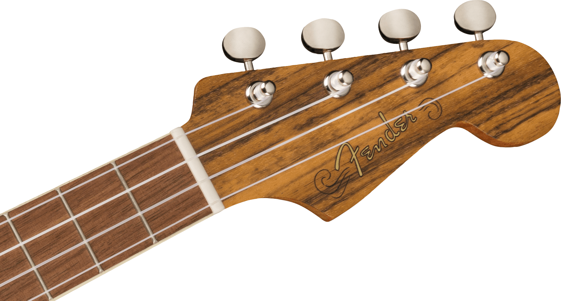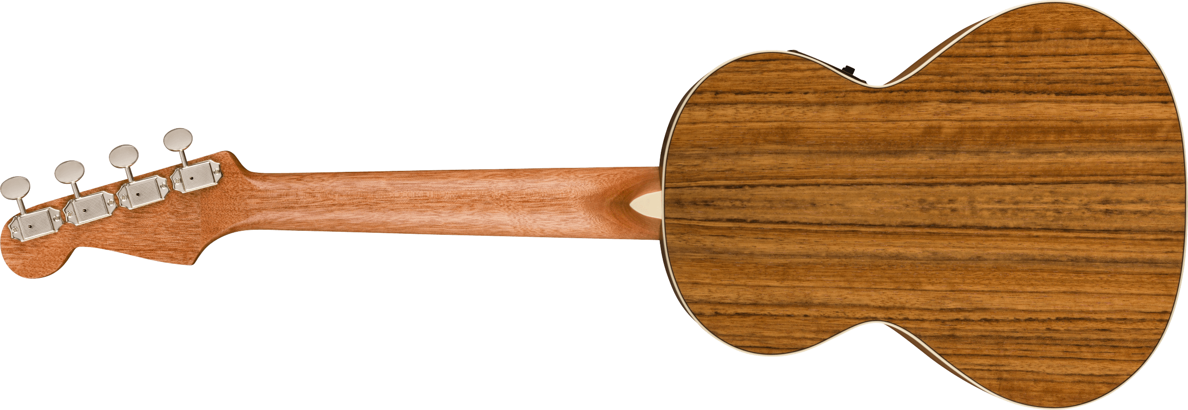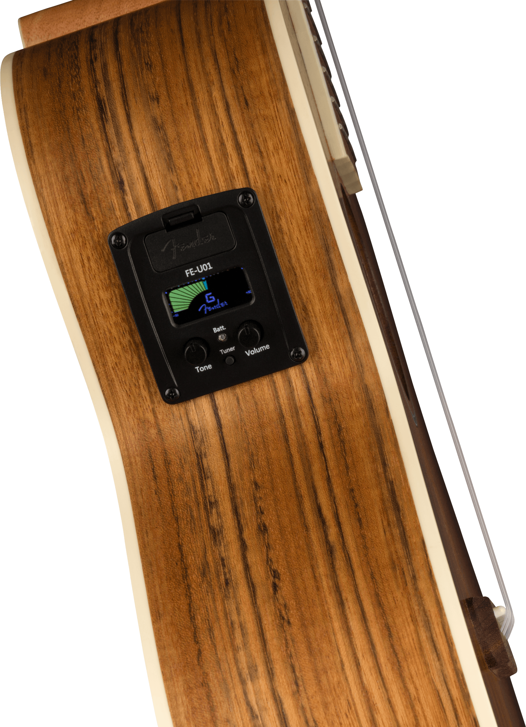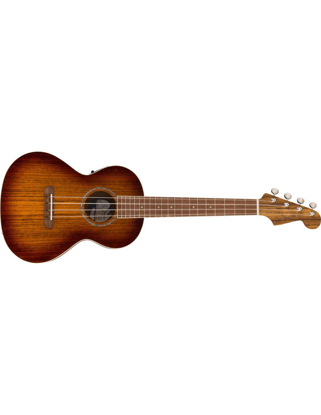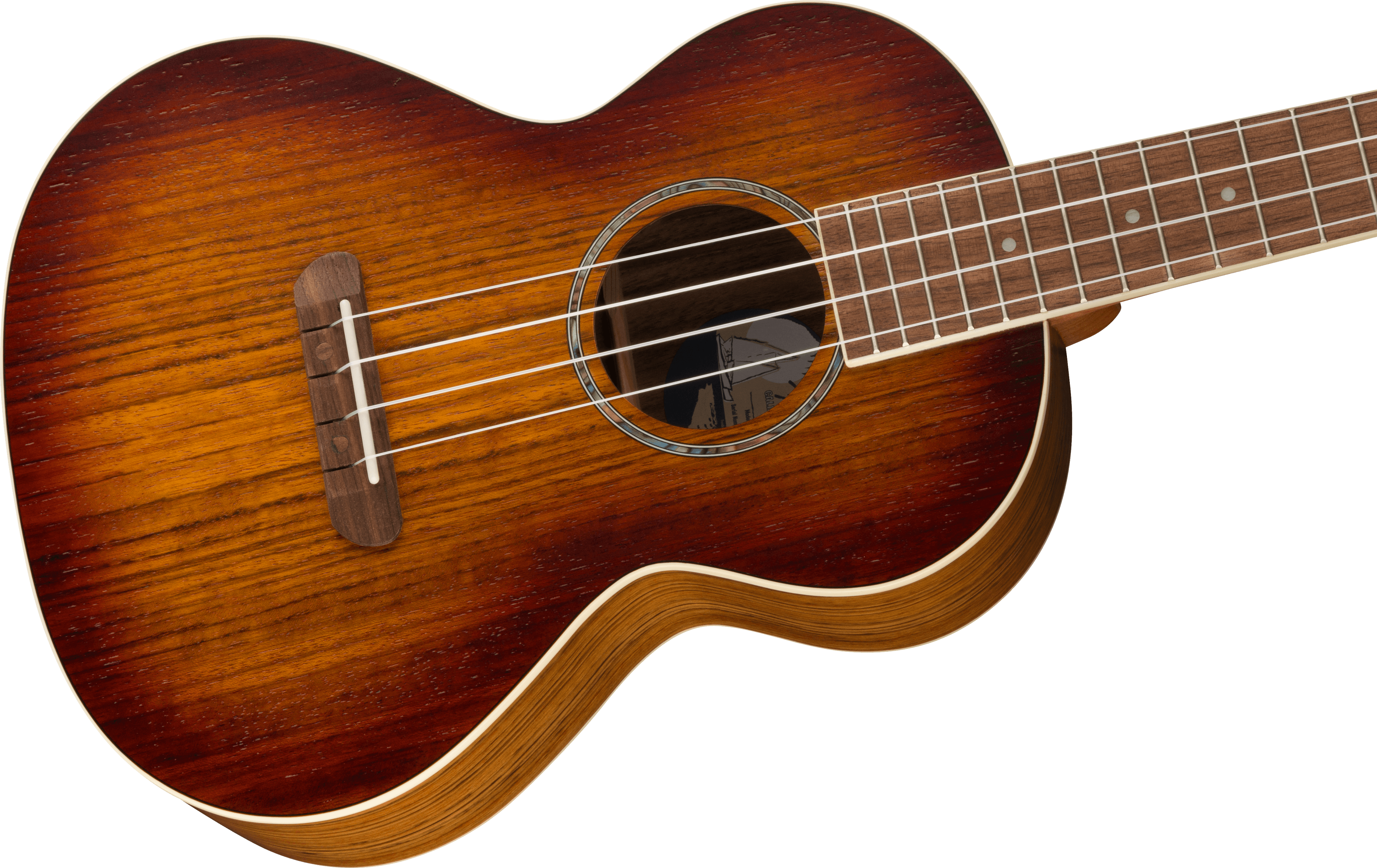 Fender Rincon Aged Cognac Burst Electrified Tenor Ukulele. The Fender Rincon is an electrified 4-string tenor ukulele. Nato neck, with walnut fingerboard, 19 frets. Ovangkol body with open pore finish. Bridge with through ropes, which does not require a knot. Fender FE-U01 electronics with Volume, Tone and integrated tuner controls. Chrome-plated mechanics. Gig-Bag included