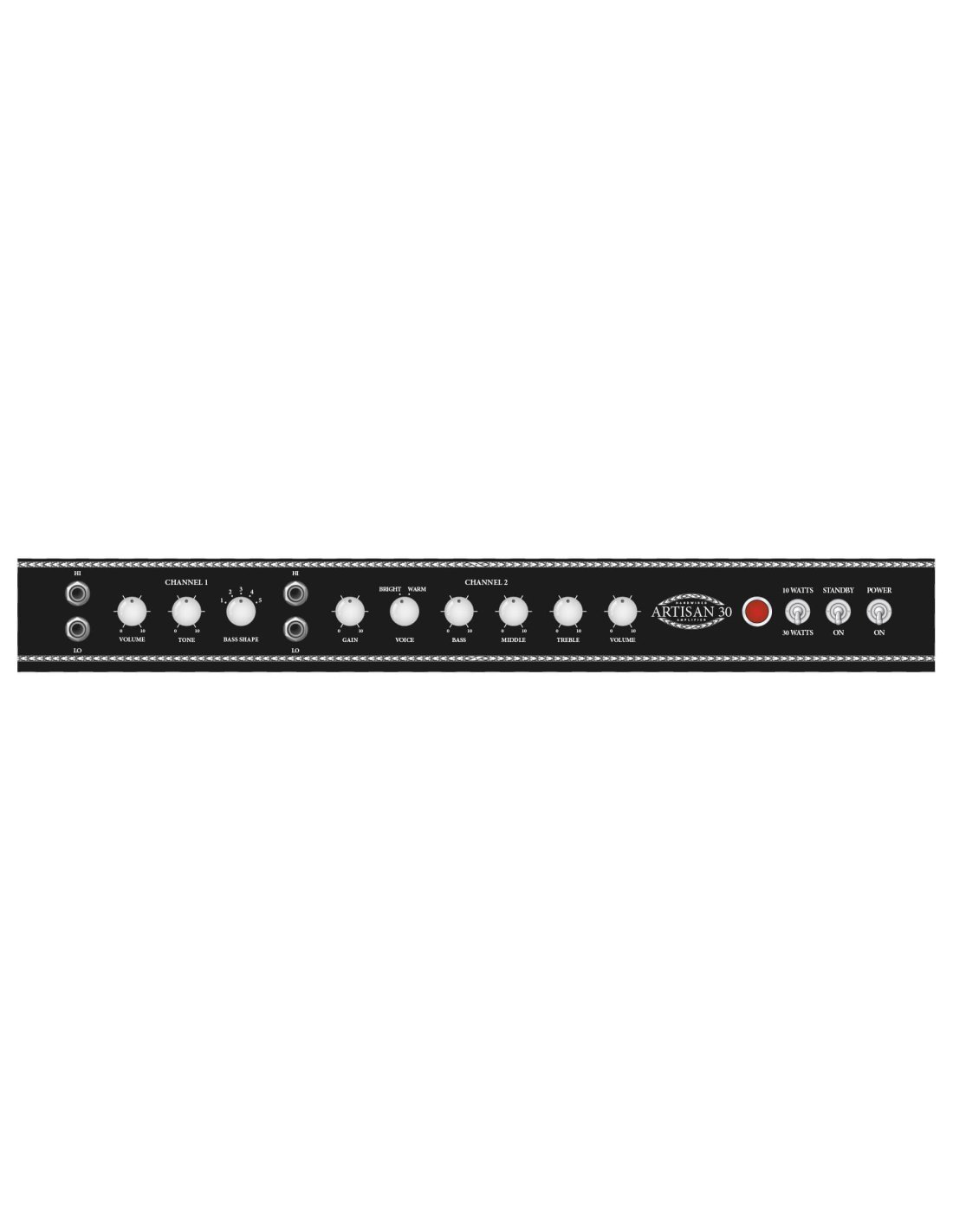 Artisan 30 combo tube amplifier. 2-channel EF86 and ECC83 (EF86 channel with 5-way Bass Shape switch/ECC83 channel with 2-way Voice switch and Master Volume). Class A. 30 W of power. 2 valves in the preamplifier (ECC83 and EF86). 4 valves in the power amplifier (4 x EL84). 2 Vintage 30 speakers with 12 'High/Low inputs perfect for mixing channels. Switch for power selection (10 W triode/30 W pentode). Impedance selector. Amplifier assembled and soldered by hand. Dimensions: 715 x 569 x 263 mm. Weight: 35 Kg.